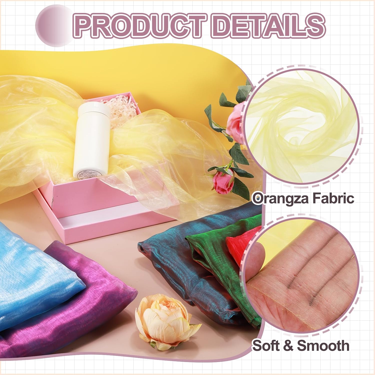 - Elevate your creative vision with this iridescent organza fabric, blending functionality and elegant beauty. Perfect for bridal wear, home decoration, curtains, table runners, event backdrops, floral arrangements, and DIY crafts.