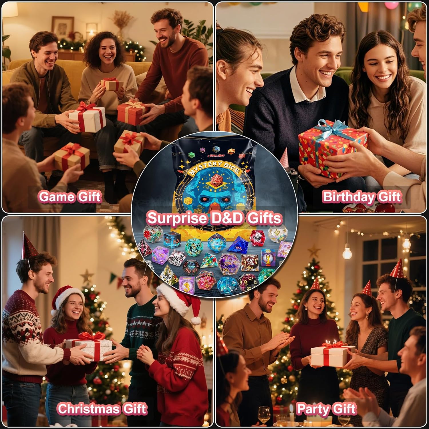 - Perfect Gift Idea: Give your friends a surprise! No one will know what surprises are hidden inside the bag until open it. Our Mystery Dice great for games and the accessory to any game room. Perfect as DND gifts or dungeon master gifts. Come surprise your adventure partner or yourself!