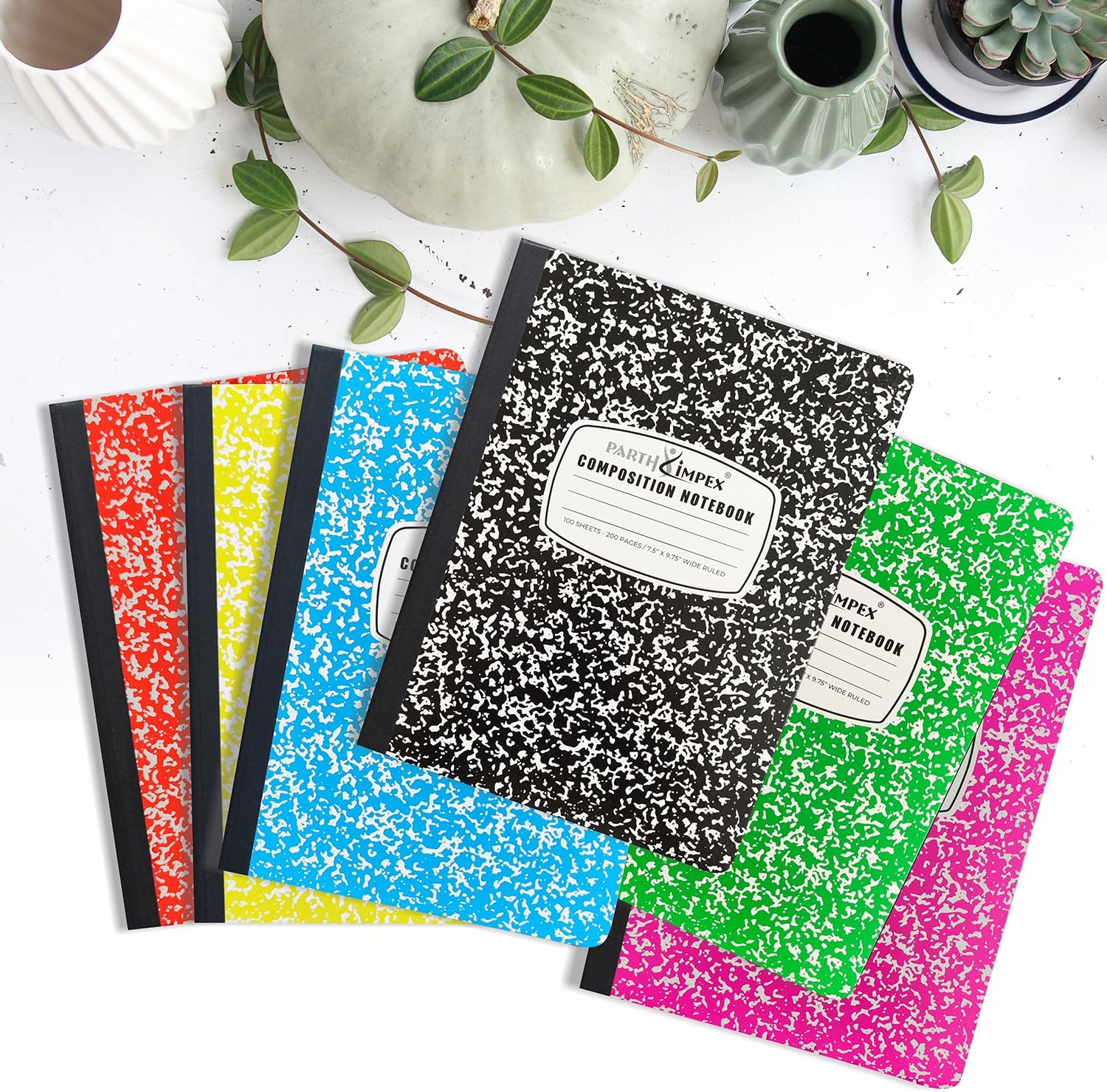 PARTH iMPEX 12 Pack Bulk Composition Notebooks Wide Ruled, 200 Pages (100 Sheets), 9-3/4 x 7-1/2, Hard Cover Wide Ruled Notebooks in 6 Assorted Colors, Composition Notebook For School College Office