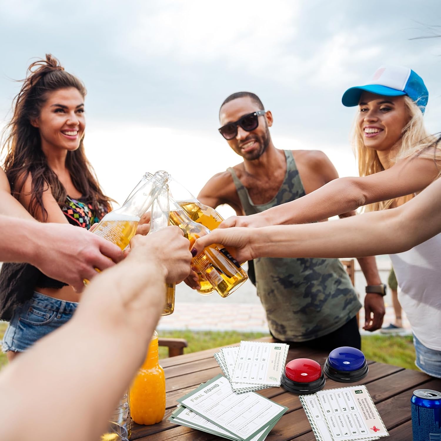 30 Pcs Camping Friendly Feud Game Set Camping Party Game Trivia Quiz with 18 Card 2 Buzzer for Adults Family Games Activities Party Supplies, Battery Not Included