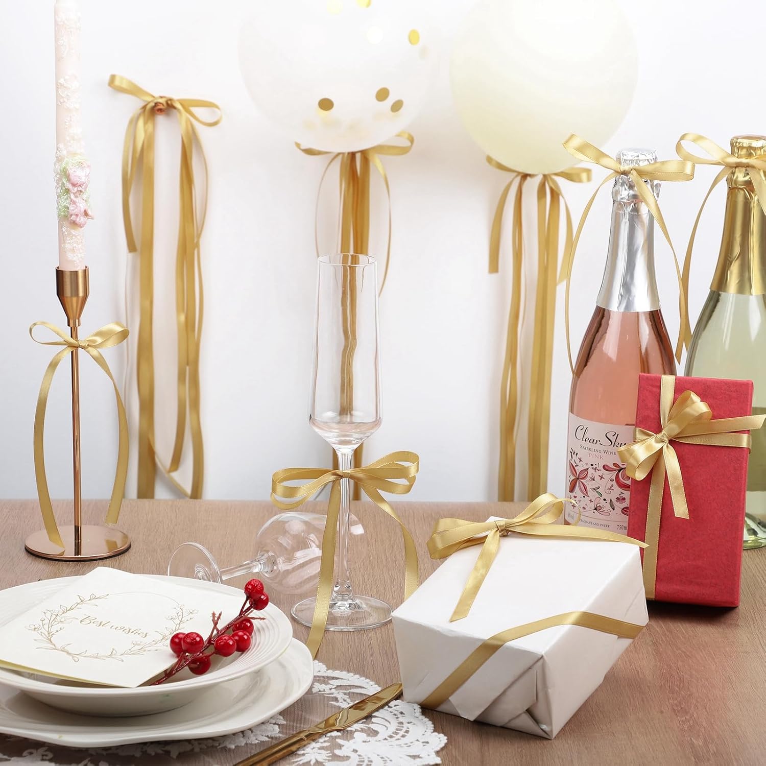 - 【Use Occasions】Gold satin ribbons are often used for multiple scenarios such as weddings, graduation, Mother's Day, Valentine's Day, Easter, birthday party, Halloween, Christmas gift wrapping or party decorations