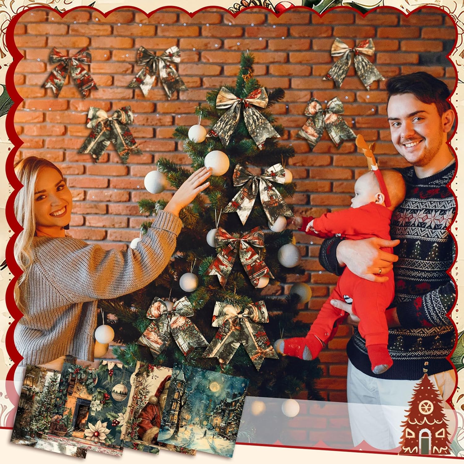 Ganeen 60 Pcs 10 x 10 Inch Vintage Christmas Quilting Fabric Squares Nutcracker Santa Claus Fabric Bundle Retro Reindeer Fat Patchwork Precut Stripe for Winter Xmas Handmade Material Sewing DIY Craft