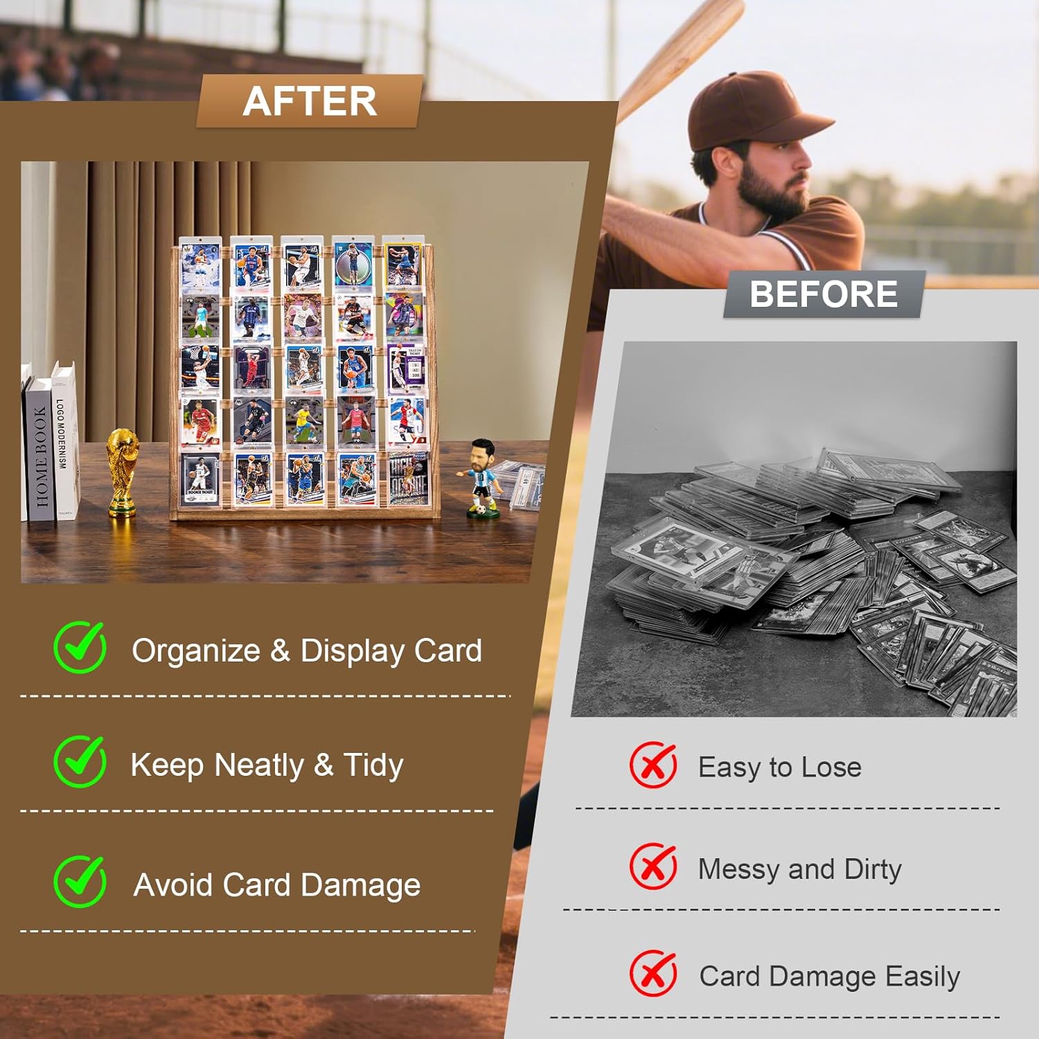 - Save Space & Easy to Install: Proudly display your treasured cards instead of hiding them in storage boxes. This baseball card display stand keeps your collection organized while saving time and space. Includes instructions and hardware for quick, hassle-free assembly