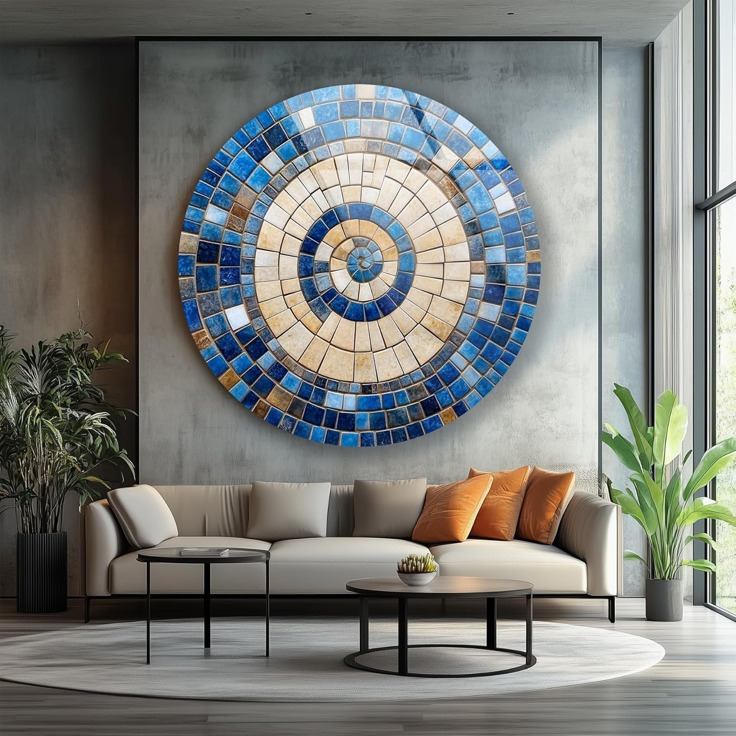 My Photostation.com 20''(50cm) Diameter Coastal Sunburst Beige & Blue Round Glass Wall Art Tempered Glass Printing Wall Decor Large Wall Art Wall Hangings