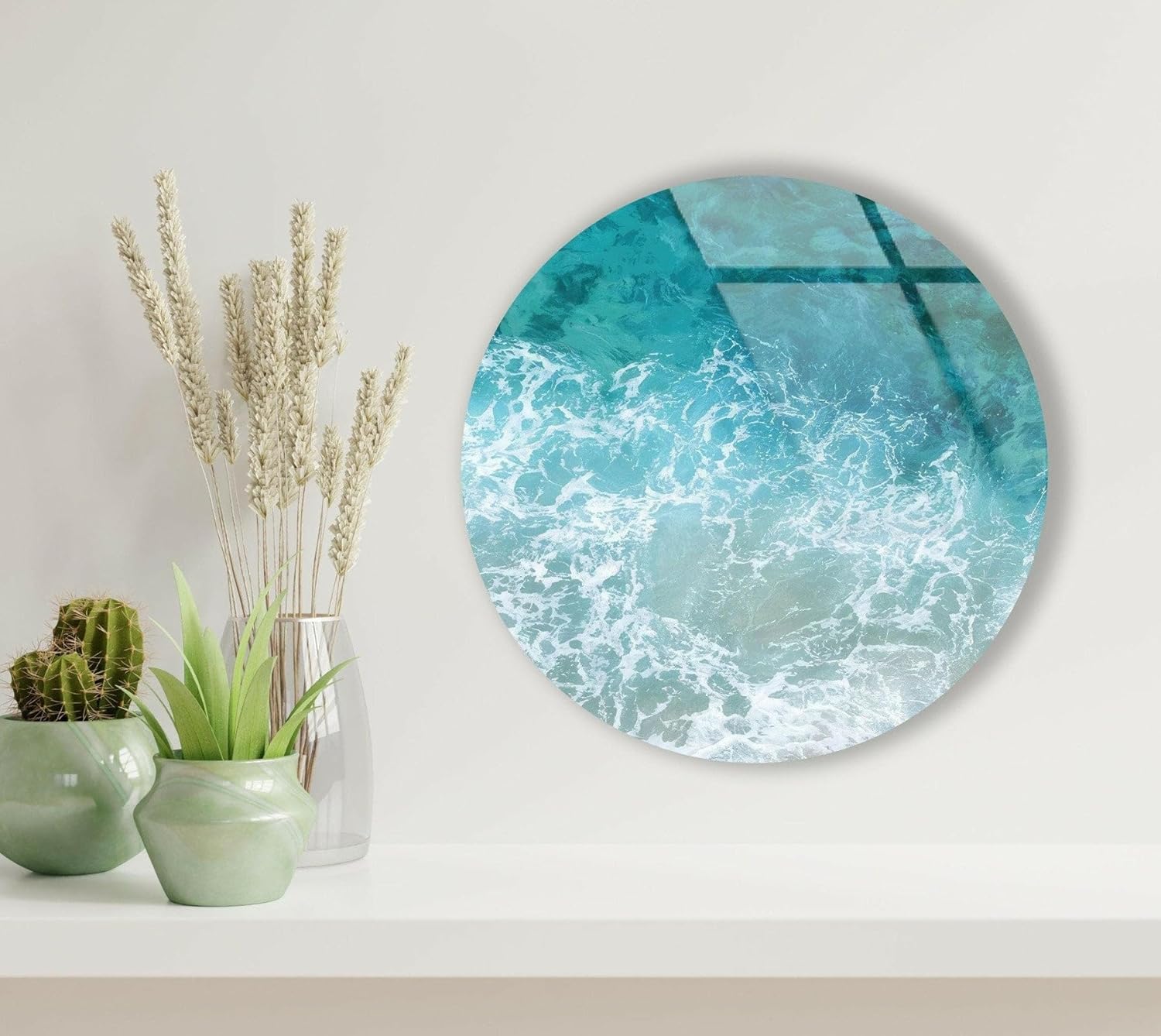 My Photostation.com 24''(60cm) Diameter Sea Waves Round Glass Wall Art Tempered Glass Printing Wall Decor Large Wall Art Wall Hangings
