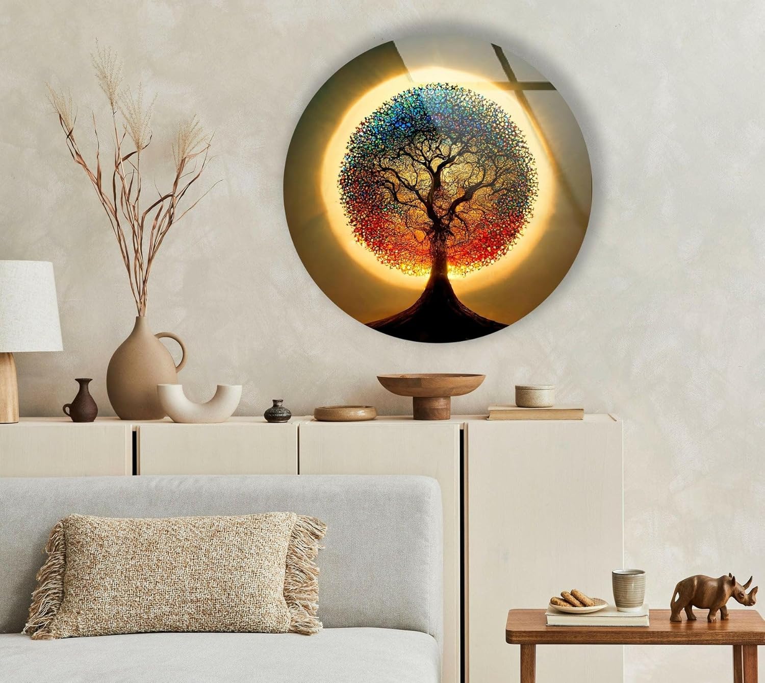 My Photostation.com 10''(25cm) Diameter Life of Tree Round Glass Wall Art Tempered Glass Printing Wall Decor Large Wall Art Wall Hangings