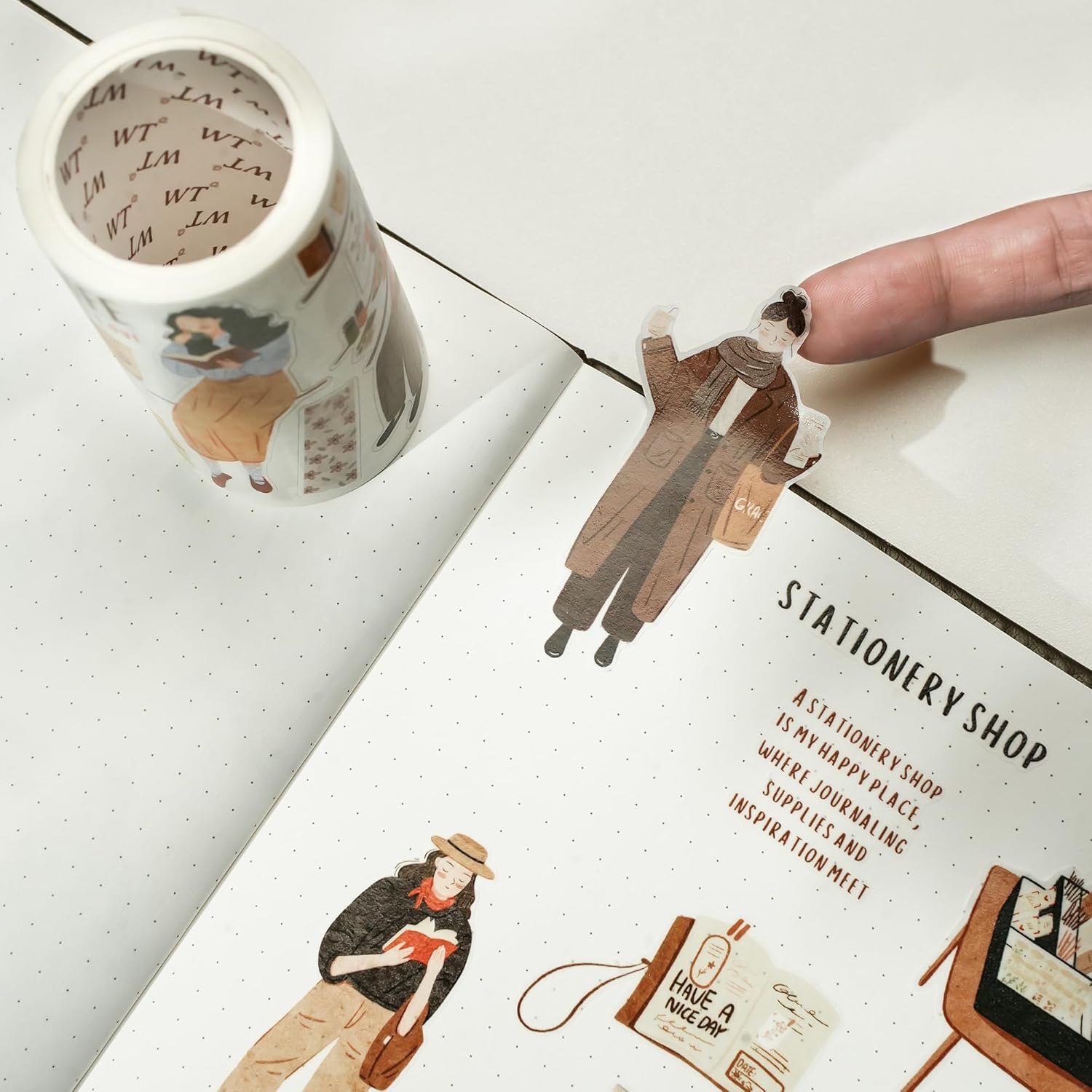 WT Pre-Cut Planner's Day 1 PET Tape, Single Roll, Original Designs, Waterproof Decorative Masking Tape for Journals, Planners, Scrapbooking, DIY Paper Projects