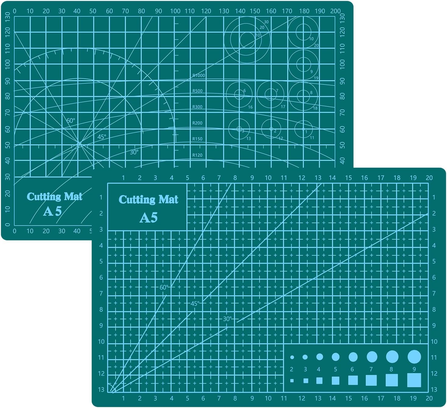 Cutting Mat 8in6in Self Healing Cutting Mat Size Double Sided 5-Ply Rotary Sewing mat for Crafts Fabric Quilting Hobby Art Clay Precision Scrapbooking Project, A5, Green 2PCS