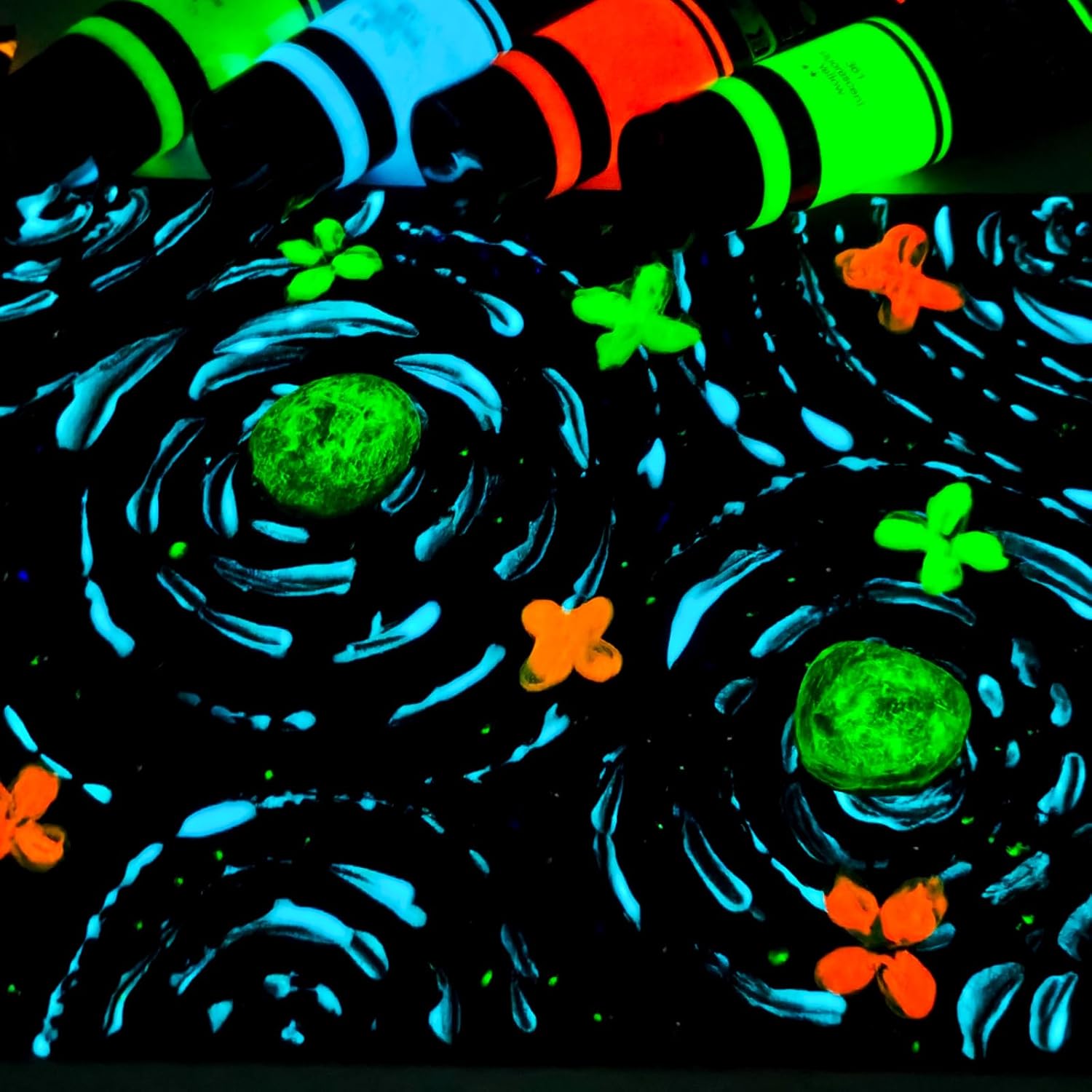 Artecho Glow in the Dark Paint 6 Colors, 120 ml / 4 oz Acrylic Paint for Decoration, Art Painting, Outdoor and Indoor Art Craft, Supplies for Canvas, Rock, Wood, Waterproof Rich Pigments