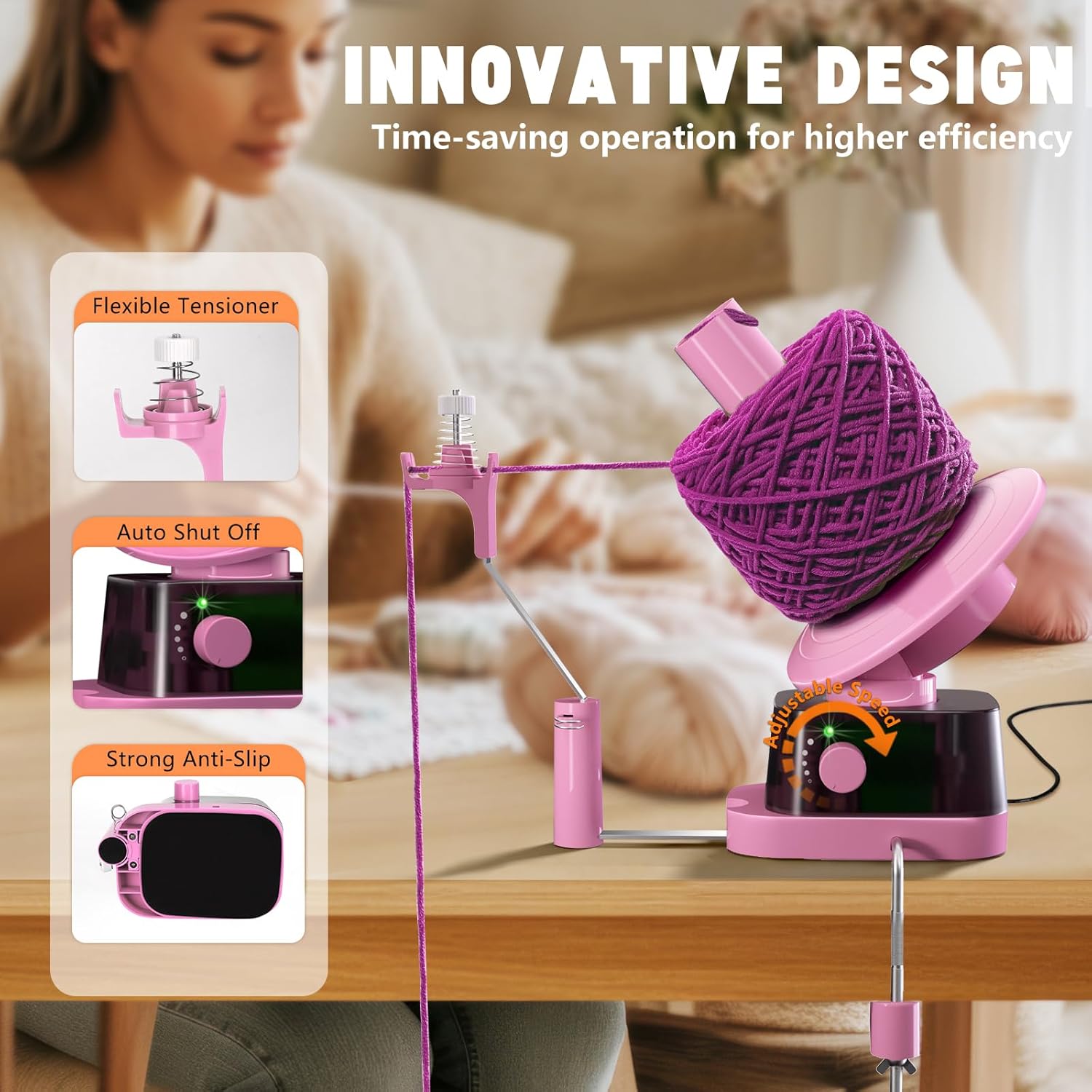 - đ§¶ăAdjustable Speed ControlăFeaturing auto shut-off and gradual speed control, our electric yarn ball winder adapts to your needs. The user-friendly automatic features and silent motor protect both the machine and your precious yarn, offering a seamless spinning experience every time.