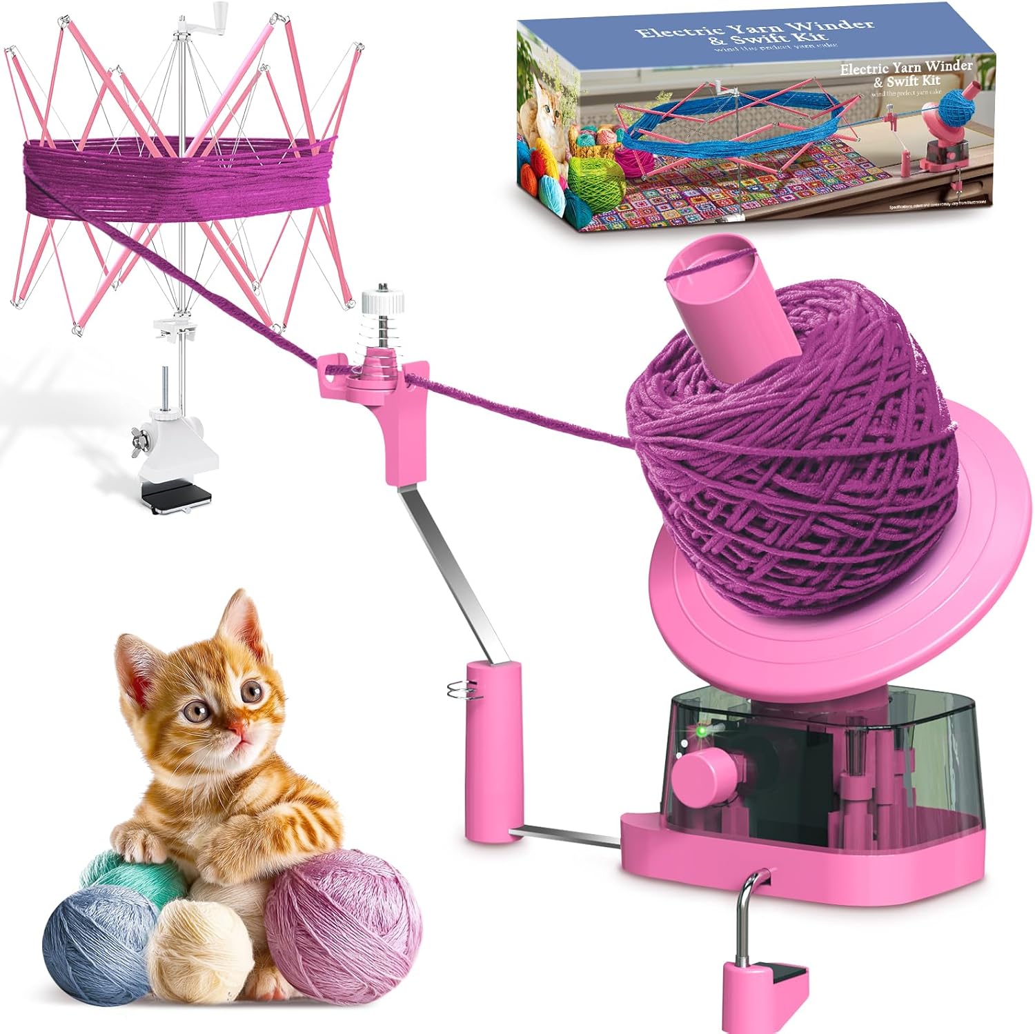 - đ§¶ăEffortless Electric WindingăOur electric yarn winder reduces fatigue with motorized spooling, forming perfect yarn cakes quickly. Compatible with yarn swift, itâs ideal for all yarn types, blanket, cotton, chenille, amiogurumi, cream, and acrylic yarns etc. This yarn winder is your essential knitting tool, saving time for crocheting projects.