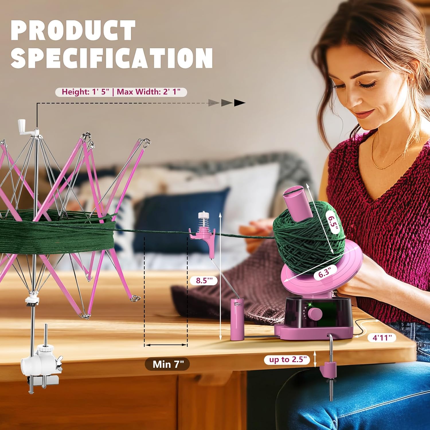 Yarn Winder and Swift, Electric Yarn Ball Winder & Swift Combo for Crocheting, Efficiently Cake with Strong Tension Adjustable Speed Up to 13 oz, Yarn Spinner Wool for Knitting Enthusiast (Pink)