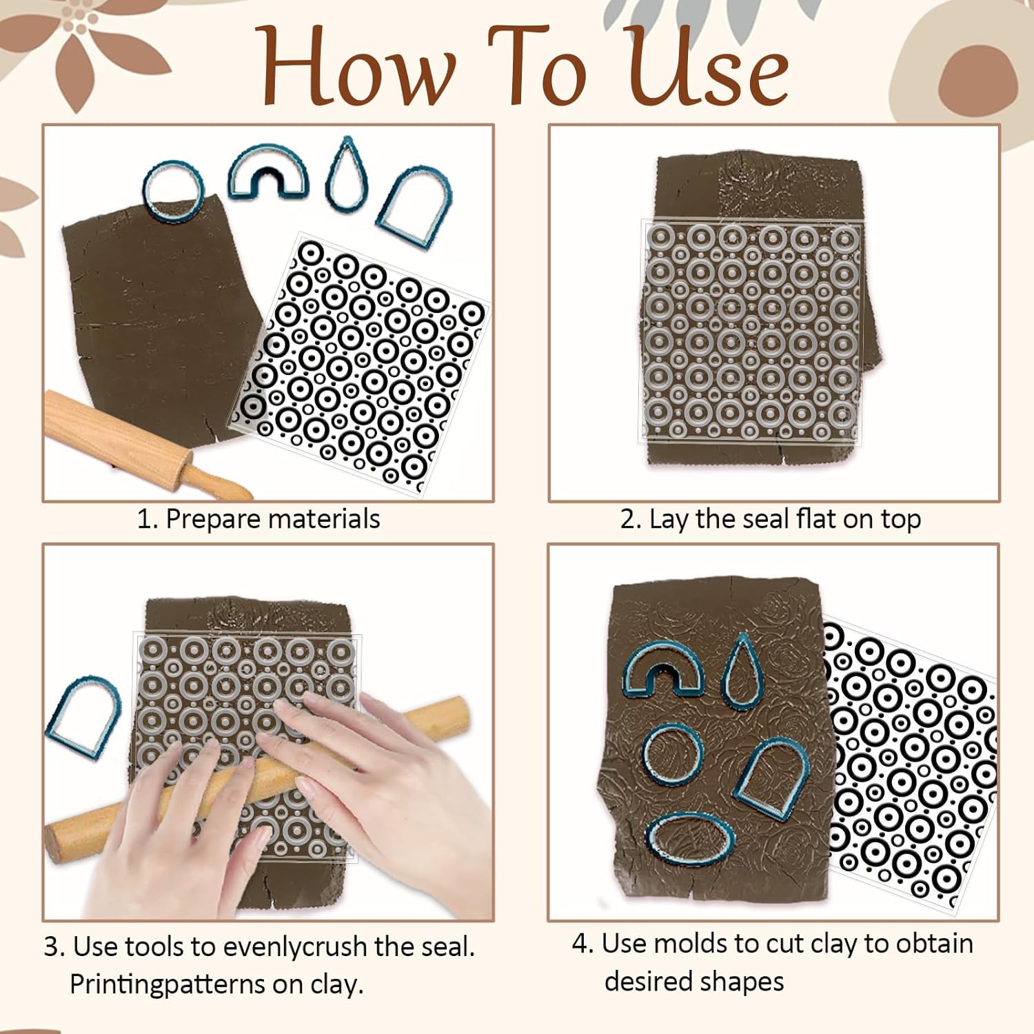 - How to Use: Roll the prepared polymer clay into flakes and place it on the clay texture mat and roll it on top to get a clear solid texture, and then colour it with a variety of colours. This clay texture stamp is beautifully detailed and is the perfect finishing touch to a clay plate
