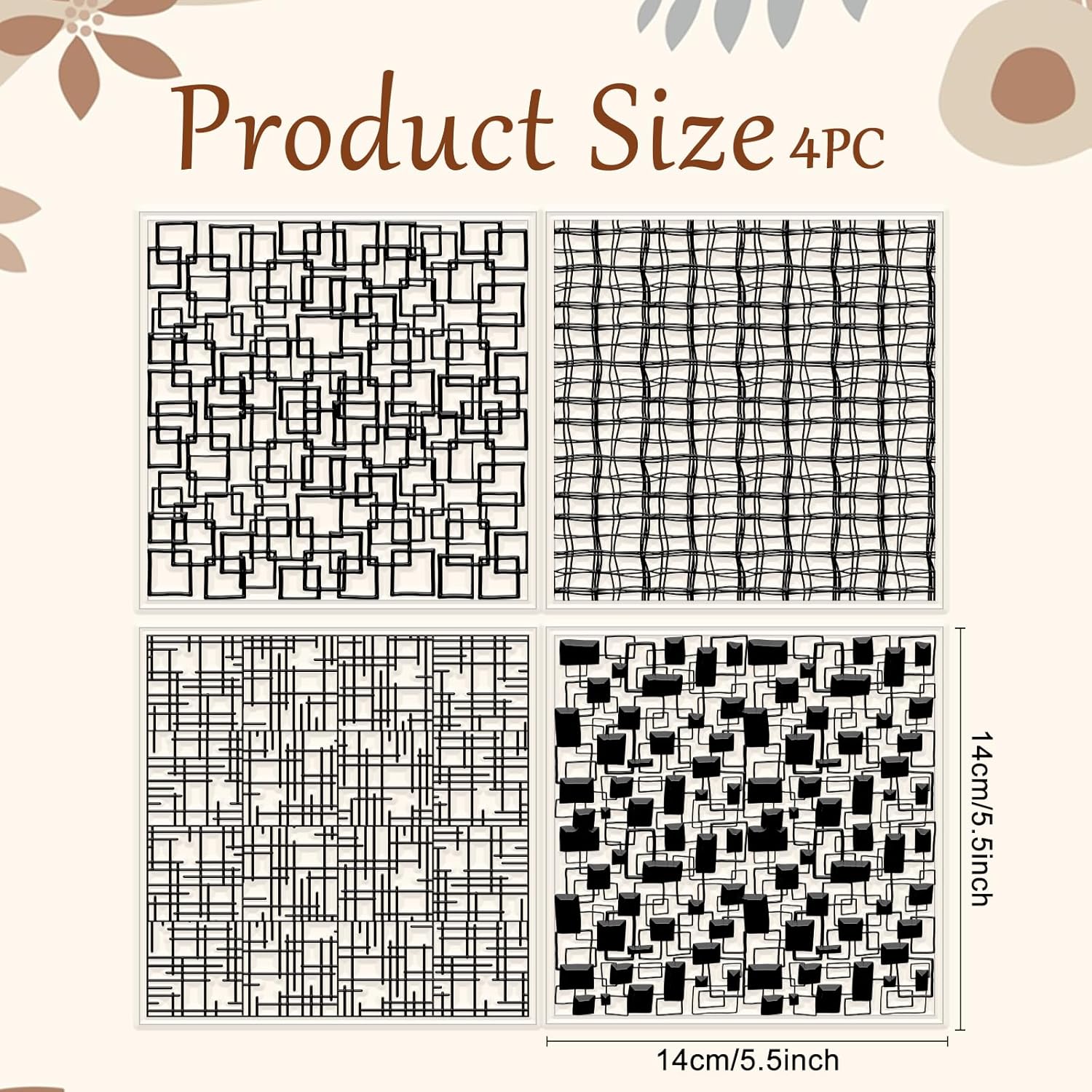CHGCRAFT 4 Pcs Graffiti Grid Polymer Clay Texture Sheets Abstract Squares Silicone Texture Stamp Seamless Pattern Modeling Pattern Pad Sheets for Jewelry and Earrings Tools, 5.5x5.5 inch