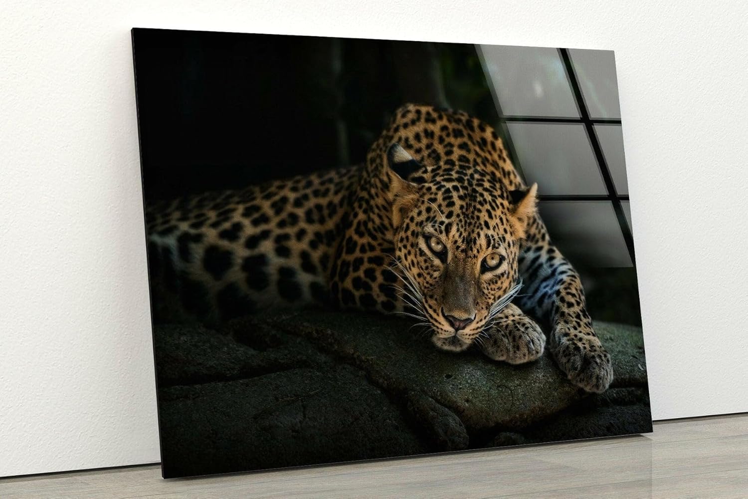 My Photostation.com 30Wx24H'' Fierce Leopard Glass Wall ArtTempered Glass Printing Wall Decor Large Wall Art Wall Hangings