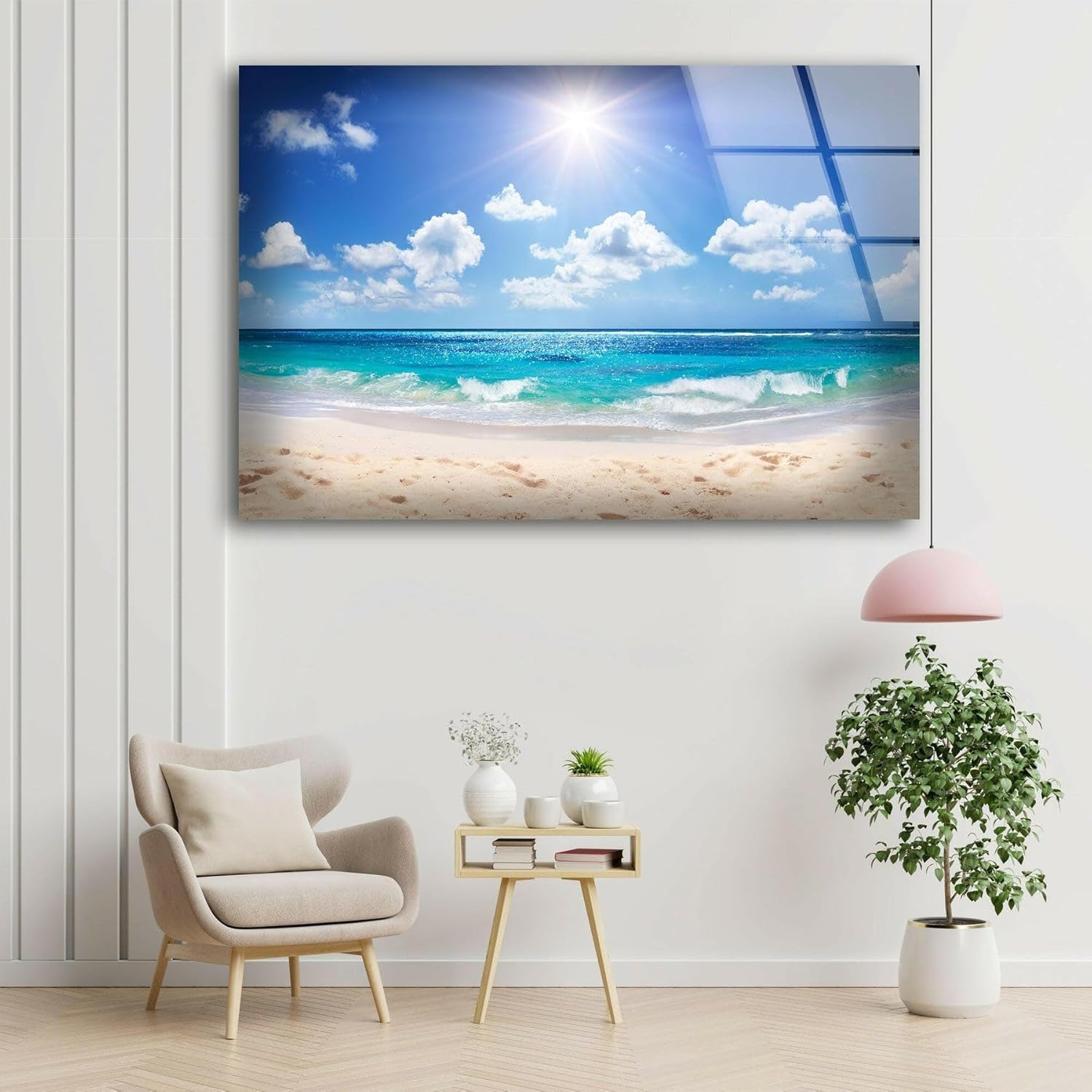 My Photostation.com 28Wx18H'' Summer Beach Landscape Glass Wall ArtTempered Glass Printing Wall Decor Large Wall Art Wall Hangings