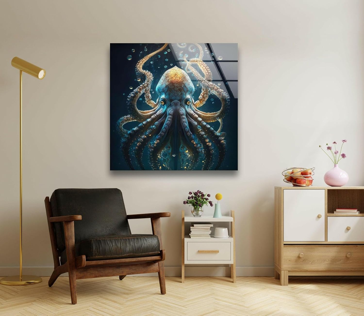 My Photostation.com Round 31,5'' Underwater Blue Octopus Glass Wall Art Tempered Glass Printing Wall Decor Large Wall Art Wall Hangings