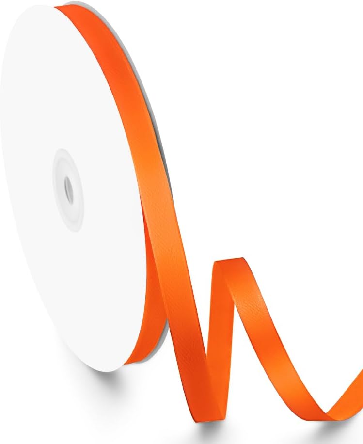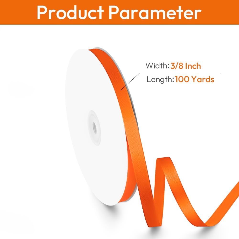 3/8" x 100 Yards Orange Ribbon, Orange Satin Ribbons for Gift Wrapping, DIY Craft, Flower Bouquet, Valentine's Day, Halloween and Birthday Party Decoration