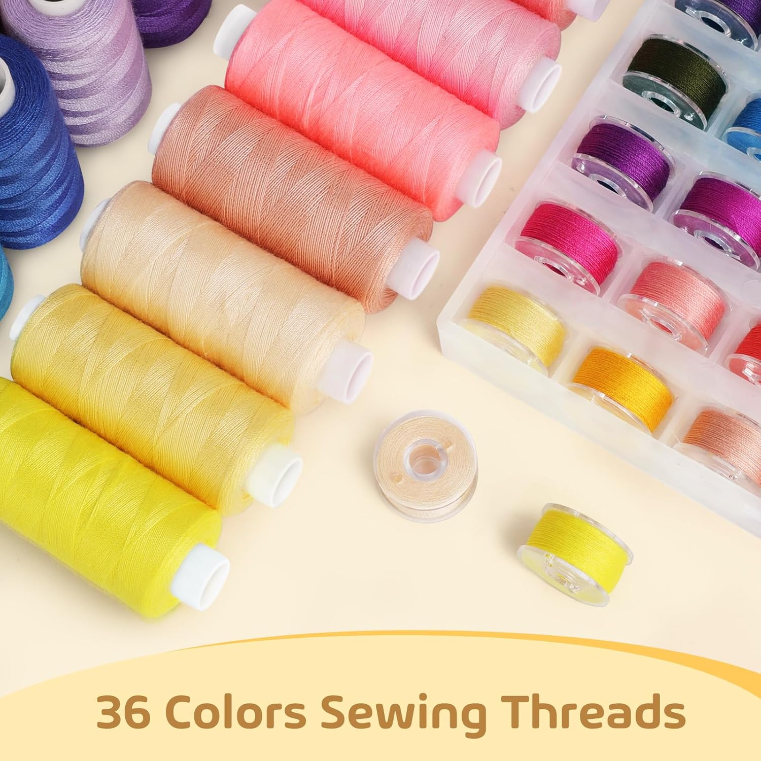 - Rich Colour Selection: Includes 72-piece sewing thread set, featuring 36 colours bobbins (30 yards long) paired with 36 matching sewing thread spools (400 yards long), making it easy to find the perfect thread colour to meet the colour coordination needs of various sewing projects. Durable and cost-effective