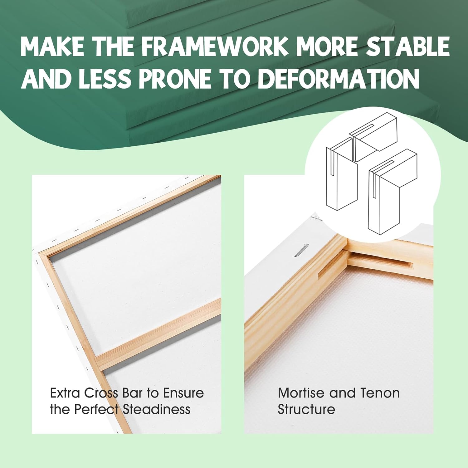 - Wood Frame:The 18x24 large canvas for painting is nailed firmly to the pinewood frame, extra cross bar to ensure the perfect steadiness, 5/8 inch thick frame structure,It's sturdy and doesn't deform easily. The high quality will enhance your painting experience.