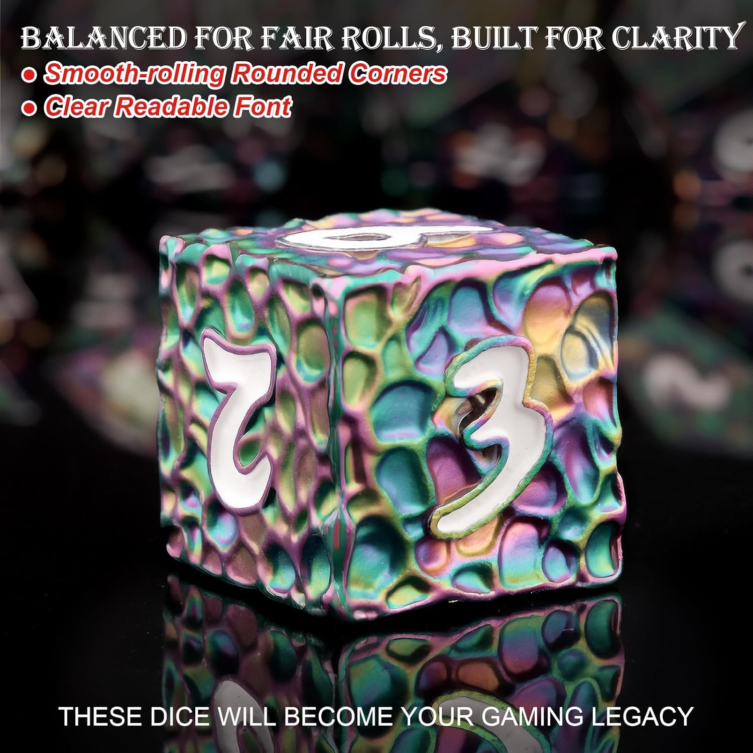 Haxtec DND Dice Set Metal Dice Compatible with Dungeons and Dragons D&D Gift TTRPG Rainbow Polyhedral Dice