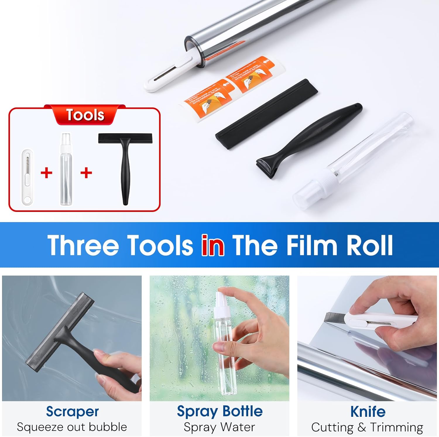 - Three Tools, Effortless Setup: The package includes a spray bottle, a top-lock knife, and a scraper. Compared to a card scraper, the long-handle scraper is easier to grip, offers a more comfortable hold, and makes it easy to remove air bubbles