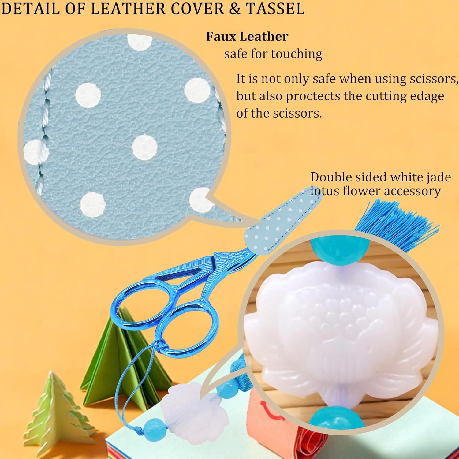 - Scissors Including:1pc small sewing scissors,1pc handmade tassels and 1pc leather scissors safe cover. suitable to be as a delicate gift for friends or families who love embroidery, DIY working.