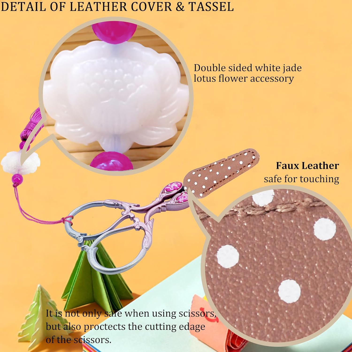 - Scissors Including:1pc small sewing scissors,1pc handmade tassels and 1pc leather scissors safe cover. suitable to be as a delicate gift for friends or families who love embroidery, DIY working.