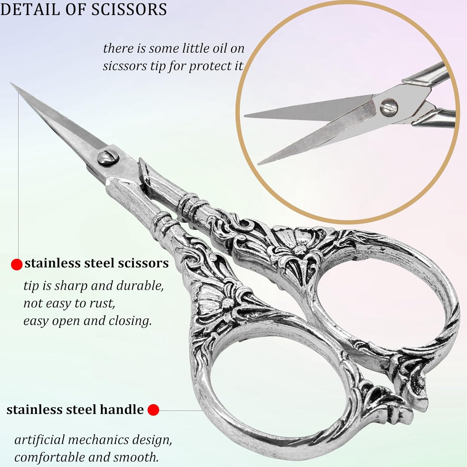- Sharp durable and lightweight scissors: made of good quality stainless steel ensure the embroidery scissors sharp, durable, anti-rust, sturdy to not loosing, lightweight to easily carrying.