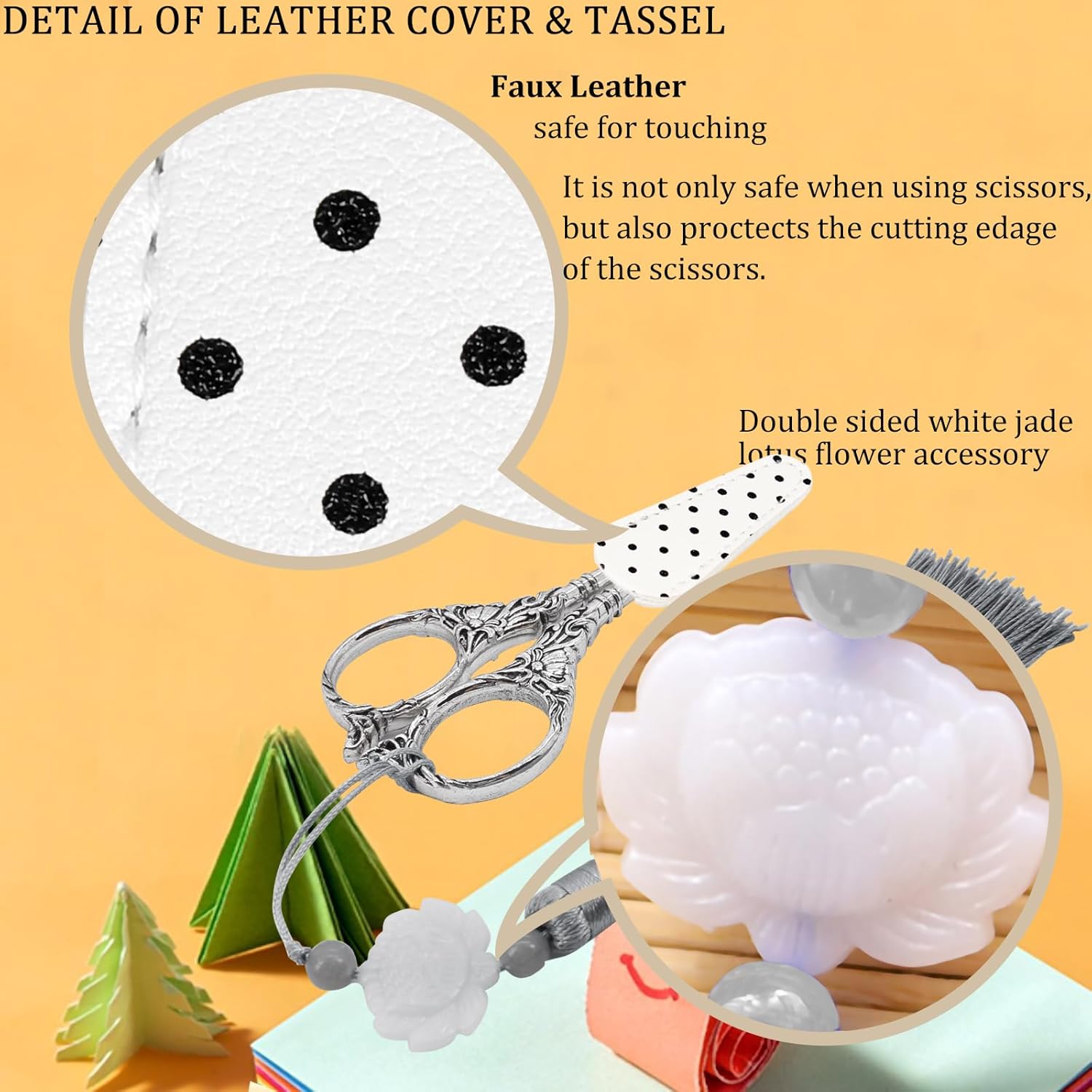 - Scissors Including:1pc small sewing scissors,1pc handmade tassels and 1pc leather scissors safe cover. suitable to be as a delicate gift for friends or families who love embroidery, DIY working.