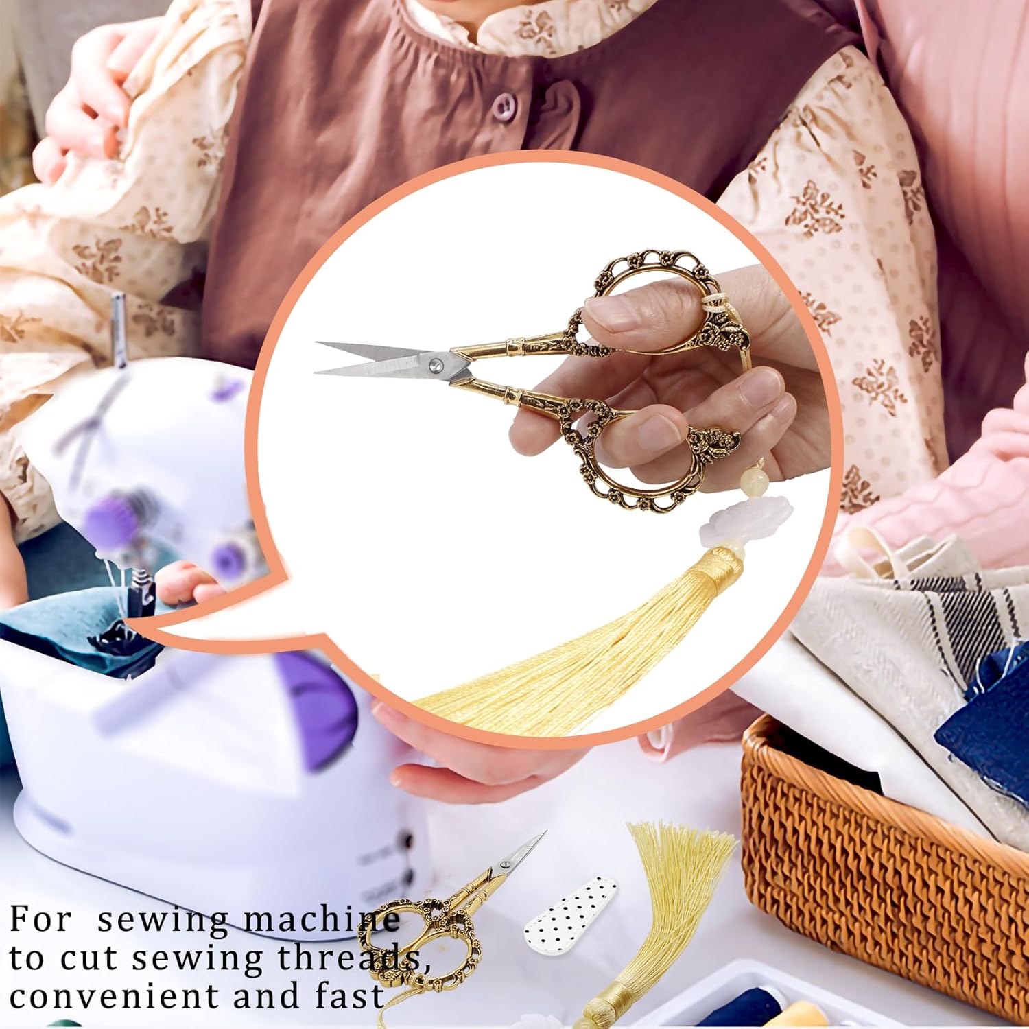 - Multipurpose Scissors:the cute scissors suitable for sewing, sewing mashion, paper, artwork, crafting,to cutting paper, thread, nail,NOT for heavy yarn or hard fabric cutting, only for threads.
