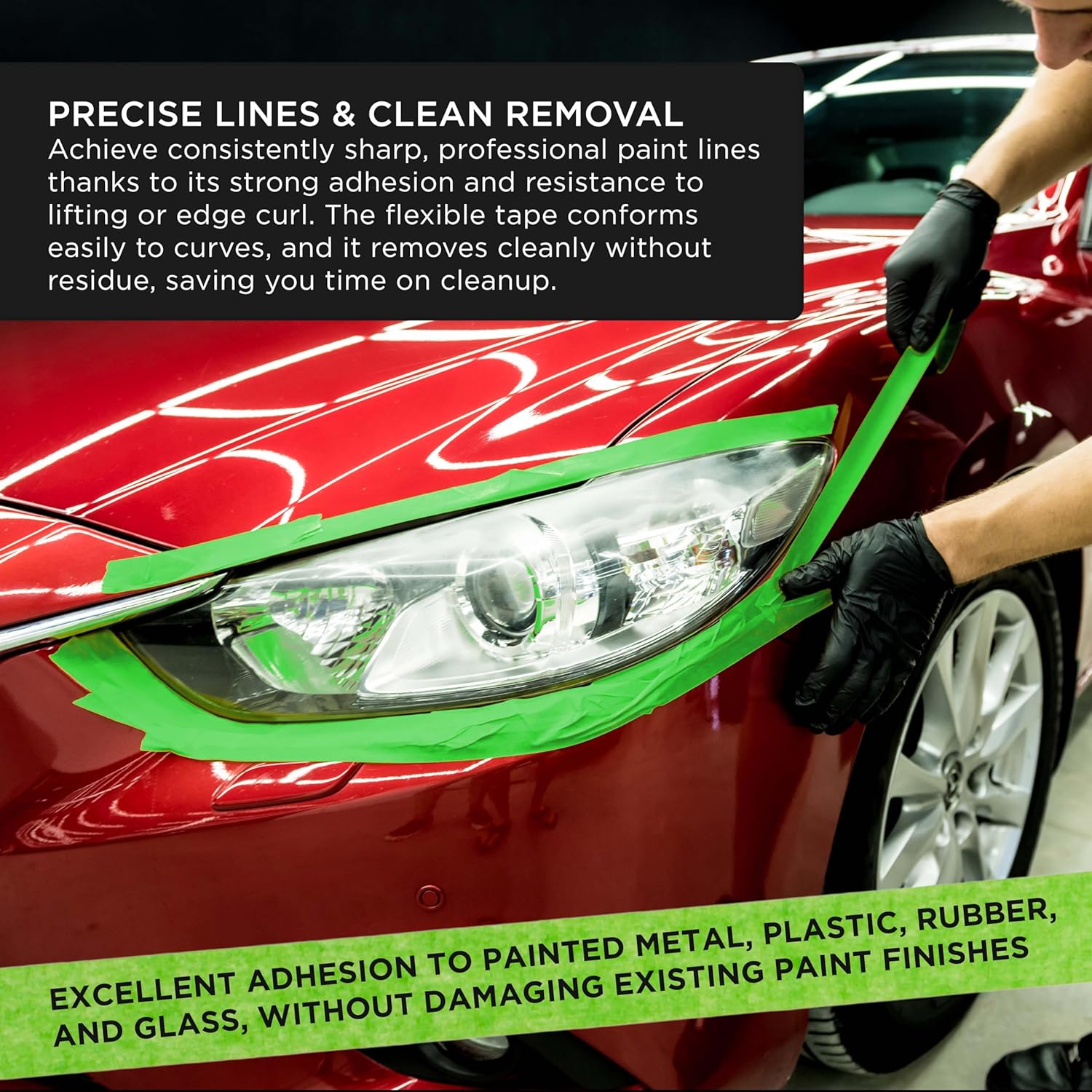 - Professional-Grade Performance: This versatile, high-performance green automotive masking tape is made in Italy and built for the toughest jobs. It is designed for the collision repair industry, but is also suitable as a workhorse masking tape for a wide range of industries and applications. Ideal for use in body shops for auto refinishing and car detailing, for industrial metalworking and woodworking shops, DIY projects, and as a household painter's tape.