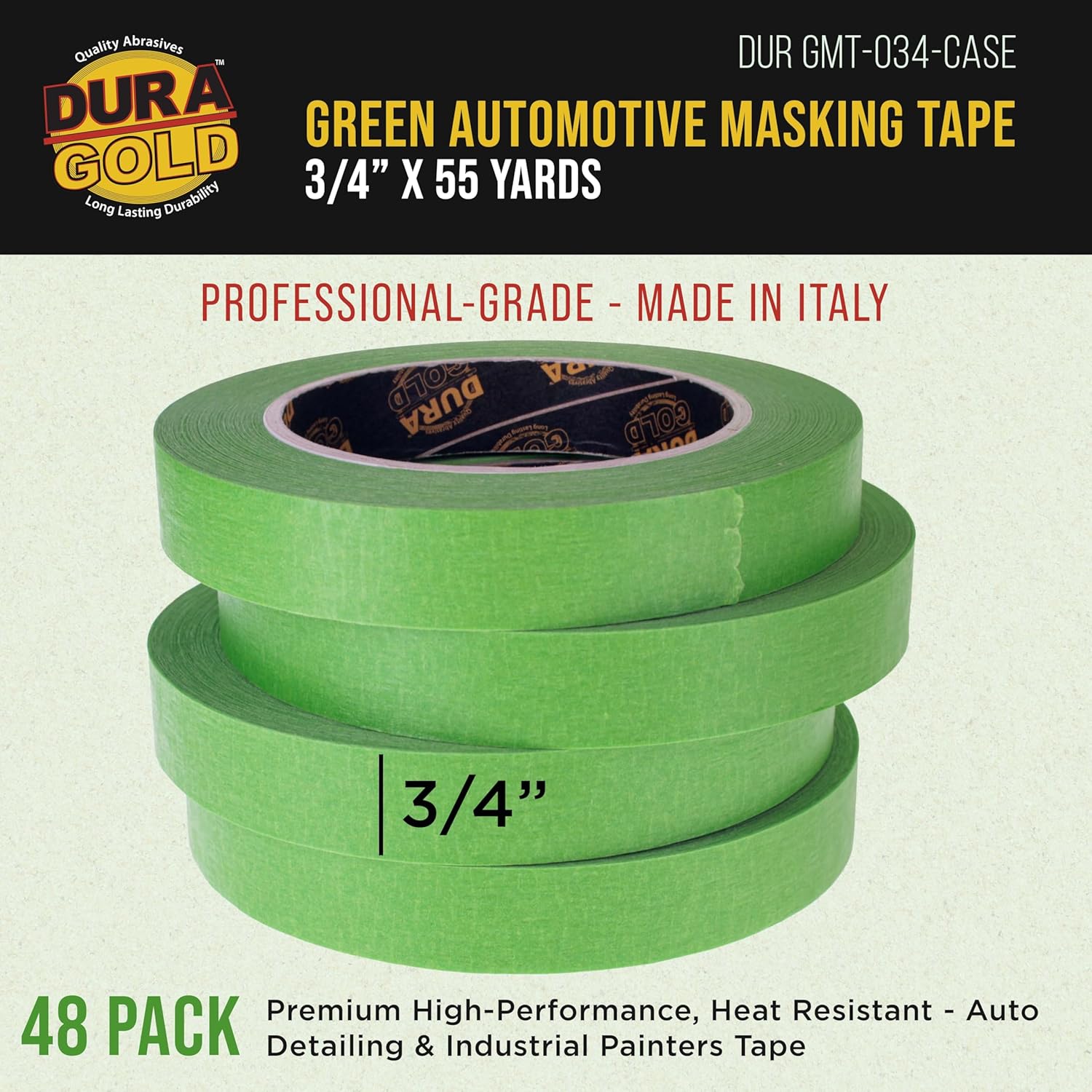 Dura-Gold Green Automotive Masking Tape 3/4 Inch (0.7 Inch x 55 Yards), Case of 48 Rolls - Premium High-Performance, Heat Resistant - Auto Refinish Painting, Car Detailing, Autobody, Painters Tape
