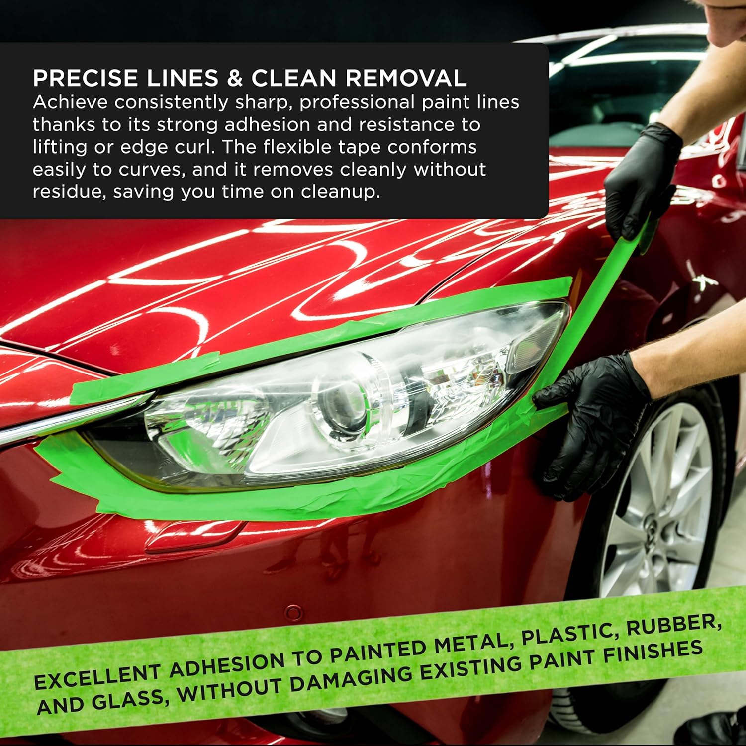 - Professional-Grade Performance: This versatile, high-performance green automotive masking tape is made in Italy and built for the toughest jobs. It is designed for the collision repair industry, but is also suitable as a workhorse masking tape for a wide range of industries and applications. Ideal for use in body shops for auto refinishing and car detailing, for industrial metalworking and woodworking shops, DIY projects, and as a household painter's tape.