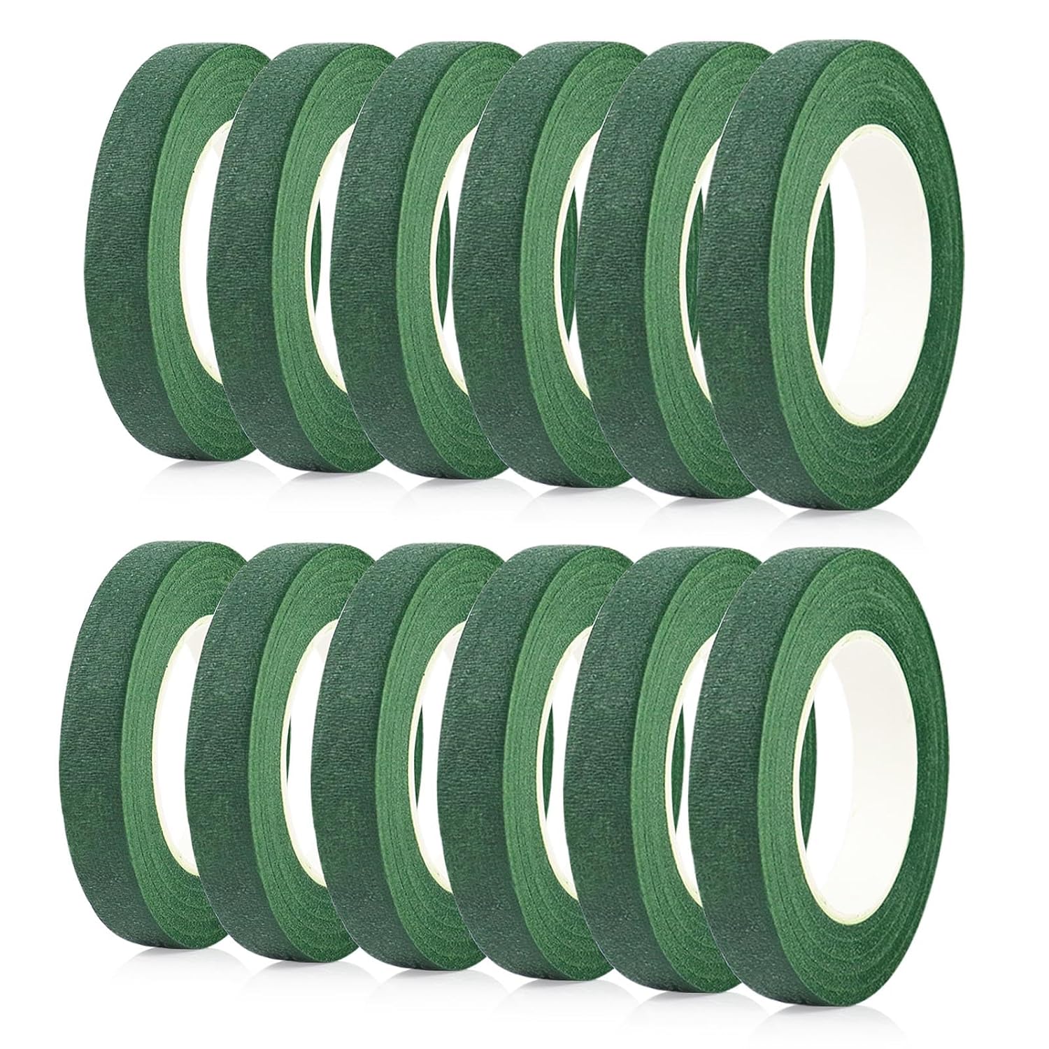 BOMEI PACK Dark Green Floral Tape 12 Rolls 1/2 inch x 30yds for Fixing, Decorating Flower Bouquets, and Bouquet Wrapping.