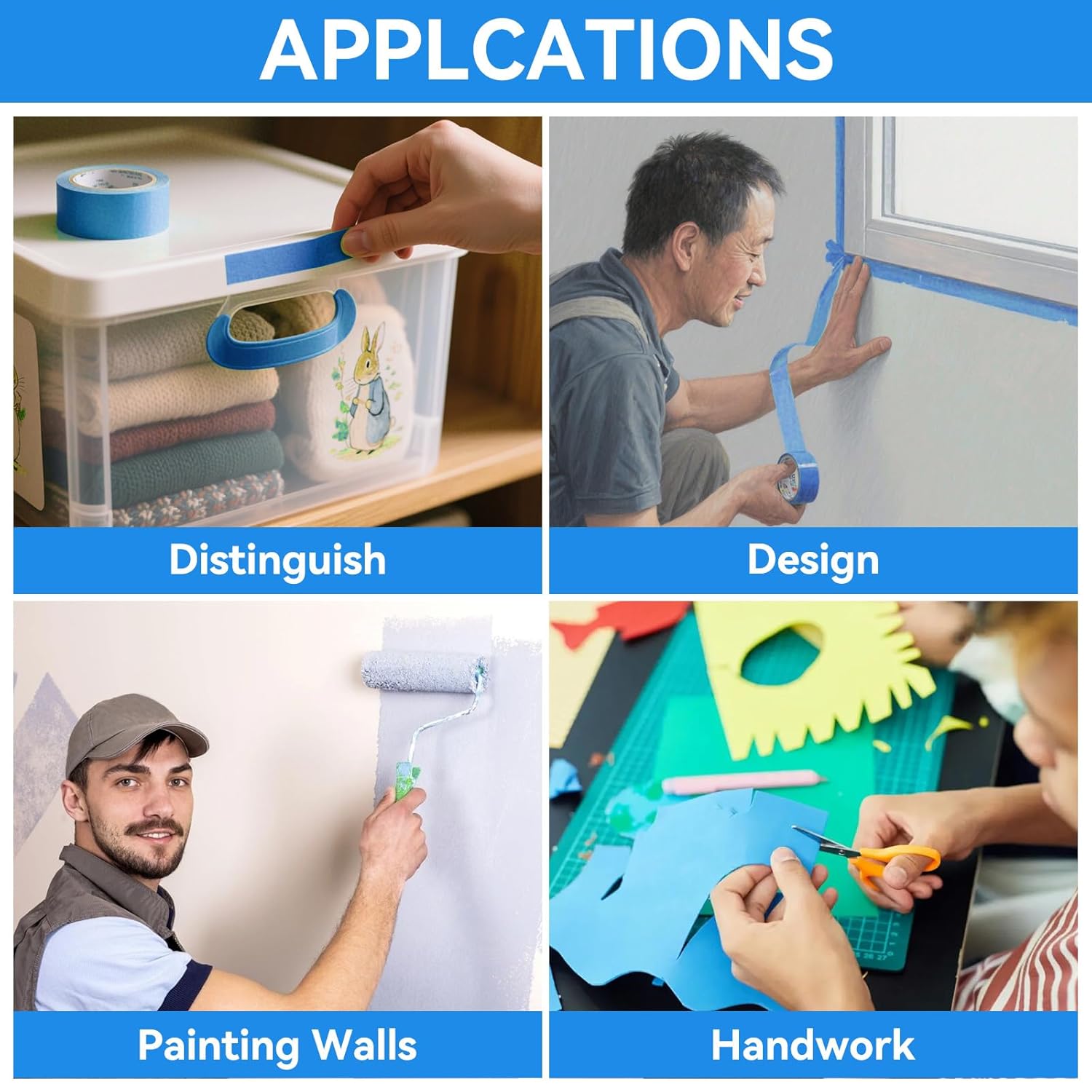 - User-friendly:6pcs Thin-Wall Safe Blue Painterβs Tape β 0.7 Inch Wide This easy-tear, hand-tearable masking tape ensures clean paint lines and sharp edges. Its high surface strength allows smooth unwinding, conforming seamlessly to corners and uneven surfaces. Perfect for sealing, marking, masking, and light fixing tasks. For optimal adhesion, apply only on clean, dry surfaces free of dust, oil, or moisture