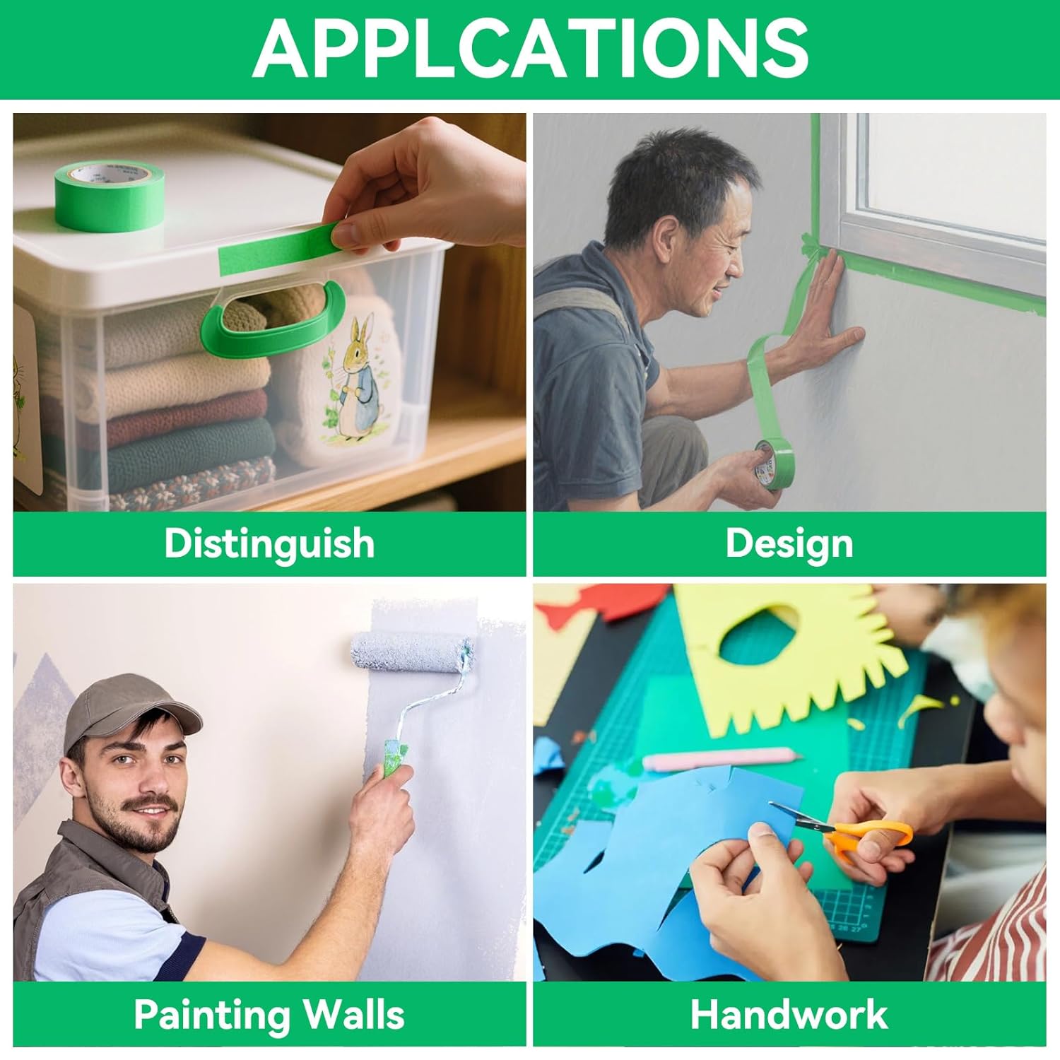 - Versatile & Multi-Purpose : writable green painters tape offers strong sealing performance, making it ideal for painting, bundling, trimming, caulking, marking, and more . Perfect for DIY, professional, school projects and industrial projects, including touch-ups, floor protection, and creative designs like color-blocking on furniture and walls.