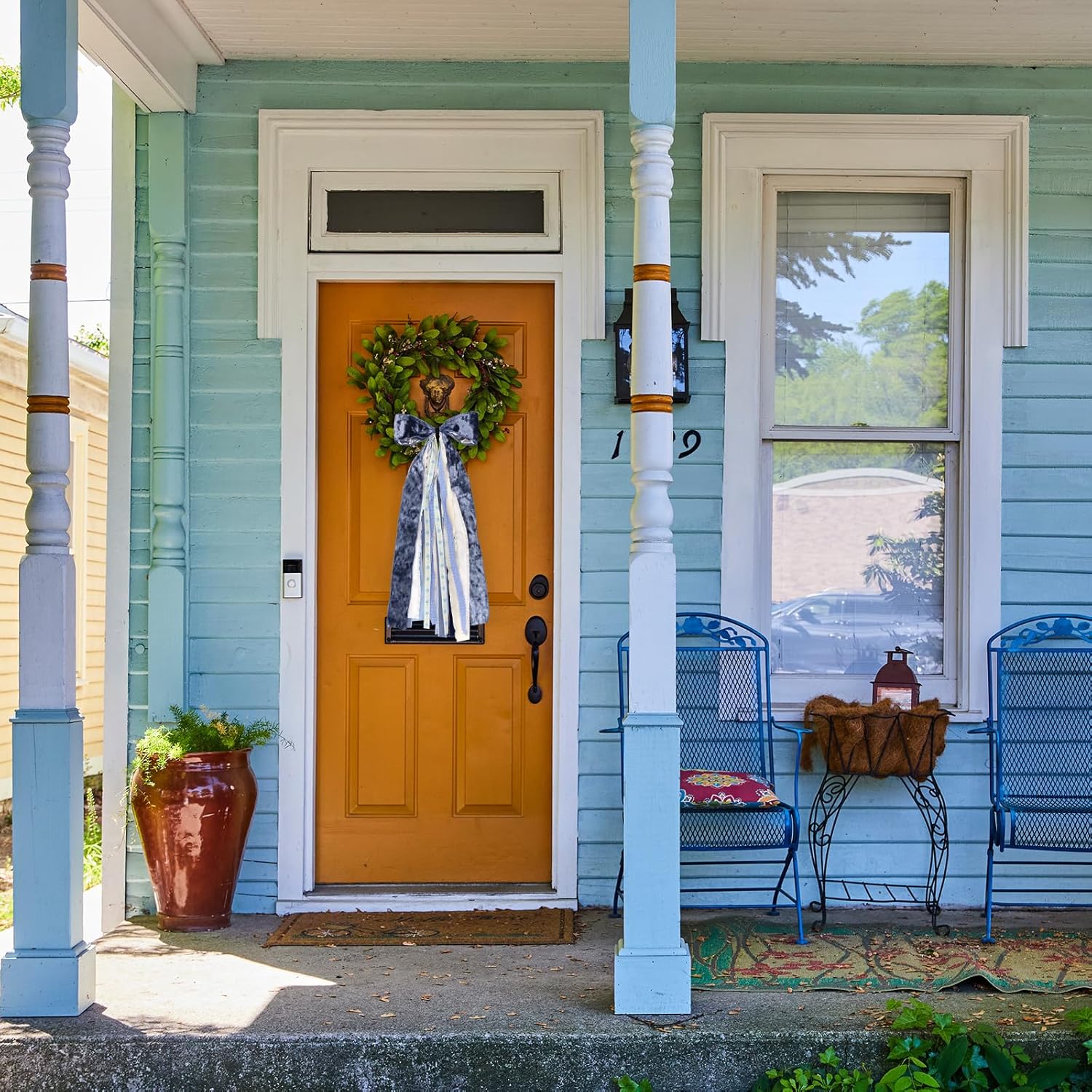 - Easy Hanging: Our large blue ribbon bow come equipped with a clip on the back, you can hang easily on windows, doors, wreaths, banisters, fences, trees, porch, garland, yard, posts, swags, mentals, and so on. Both outside decorating and inside decorating are suitable.