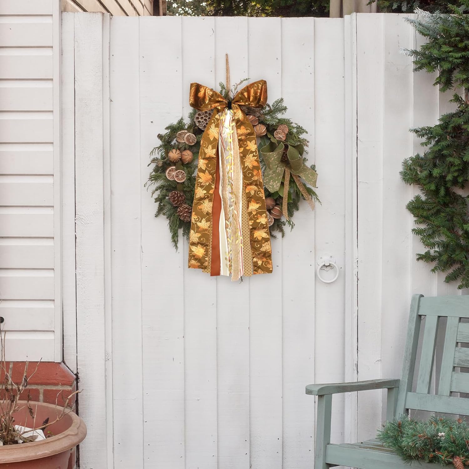 - Size Information: The orange bows measure 9.45 inch in width and the hanging length is 23.6 inch, the eye-catching size to decorate home tree, wreath or anywhere you want, adding a warm festival atmosphere to your house.