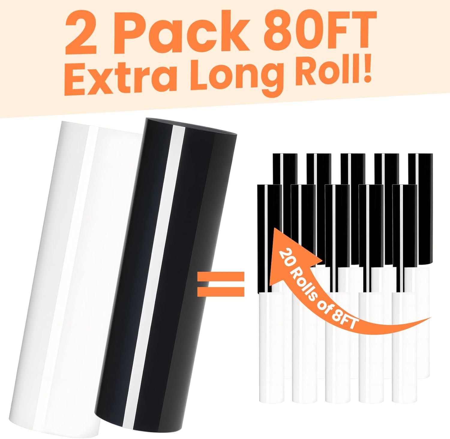- 【Massive 2 Pack 80ft HTV for Maximum Value】Get significantly more material at the lowest cost per foot, saving you up to 50%+ vs. smaller packs while delivering the same premium quality, easy-to-use white heat transfer vinyl that compatible with Cricut & Silhouette cutting machine. Enjoy big project savings & less frequent reordering