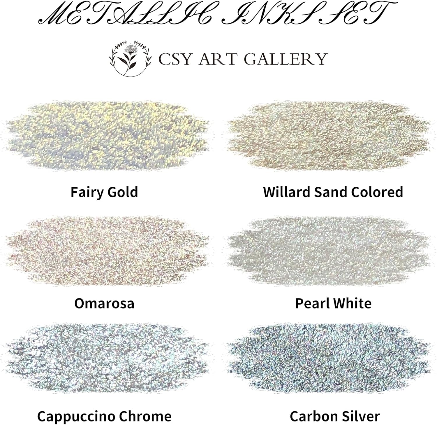 CSY art gallery Metallic -Pearlescent-Glitter Acrylic Ink -Shining Calligraphy Paint -Silver, Rose Gold Rich Pigments Perfect for Artists, Canvas, Rocks, Wood, Fabric, Ceramic (Galaxy Starlight Set)