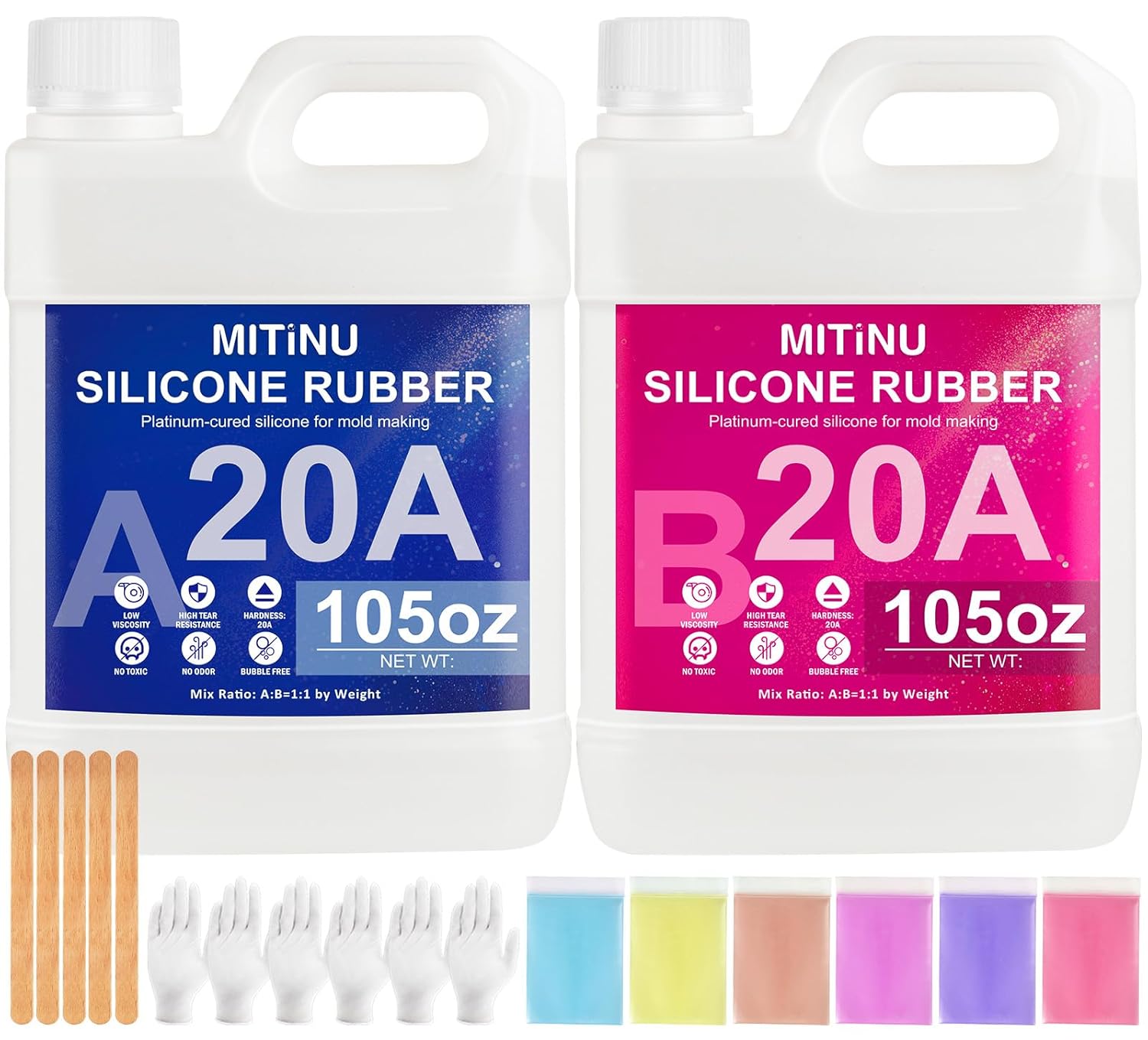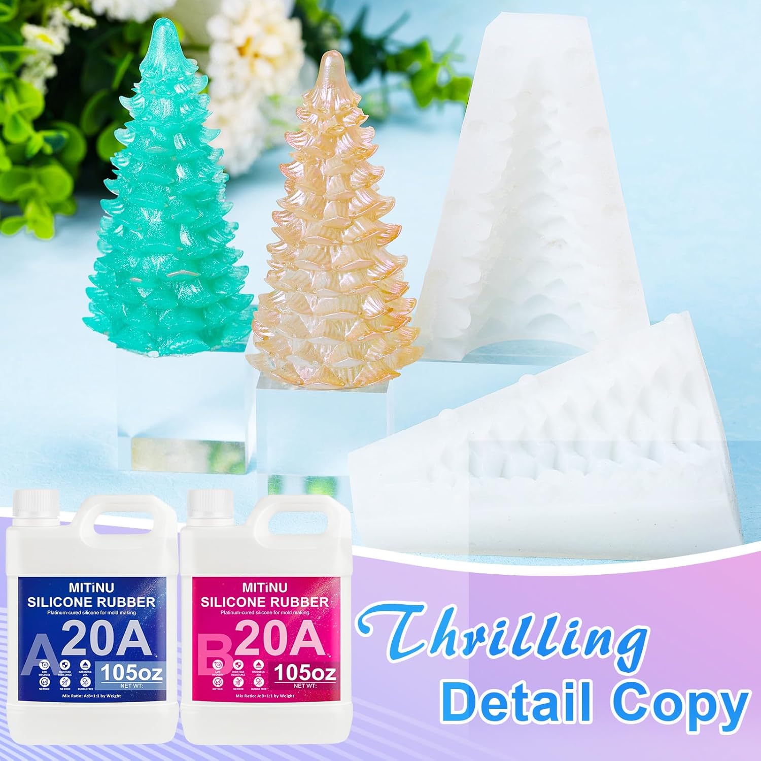 Silicone Mold Making Kit - 20A Liquid Silicone Rubber (1:1 Mix), Non-Toxic & Bubble Free Platinum Cure Silicone for Making Molds for Resin, Soap, Concrete, Craft Molds - 210oz Total