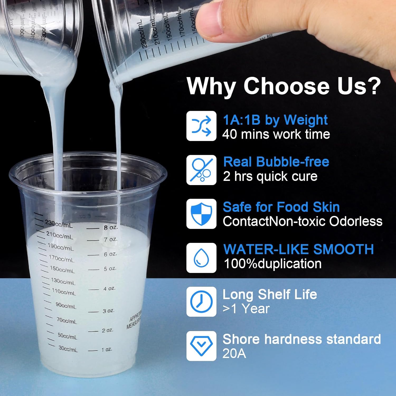 - 【Easy Mixing & Pouring】: This silicone molds making kit includes part A and part B with mix ratio 1:1 by weight; Pour the equal Part A and Part B together, then stir the silicone rubber for 3 minutes, very easy to use, no special skills or tools are needed; make sure to scrape the bottom and the sidewalls of the mixing cup to ensure thoroughly mixed.