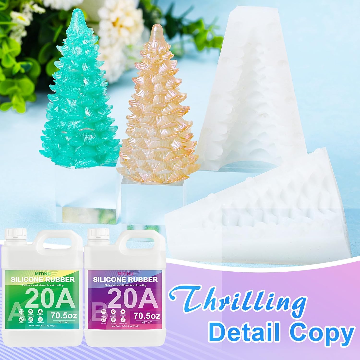 Silicone Mold Making Kit - 20A Liquid Silicone Rubber (1:1 Mix), Non-Toxic & Bubble Free Platinum Cure Silicone for Making Molds for Resin, Soap, Concrete, Craft Molds - 141oz Total