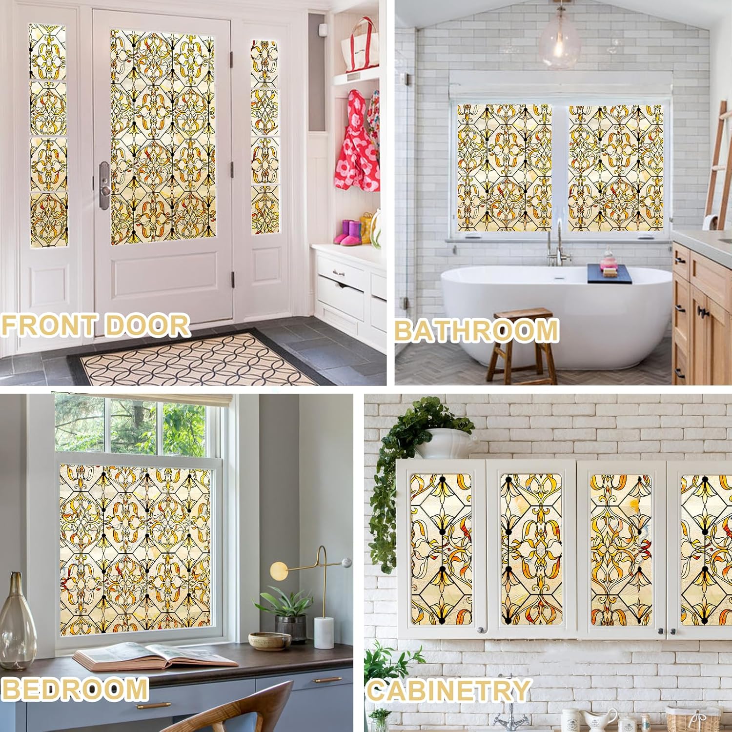 - Easy to Install and Window Friendly-Installation is a breeze with our Static Cling Decorative Stained Glass Film, which requires no adhesive. It is reusable and repositionable without damaging your windows and comes with a spray bottle and squeegee for your convenience.