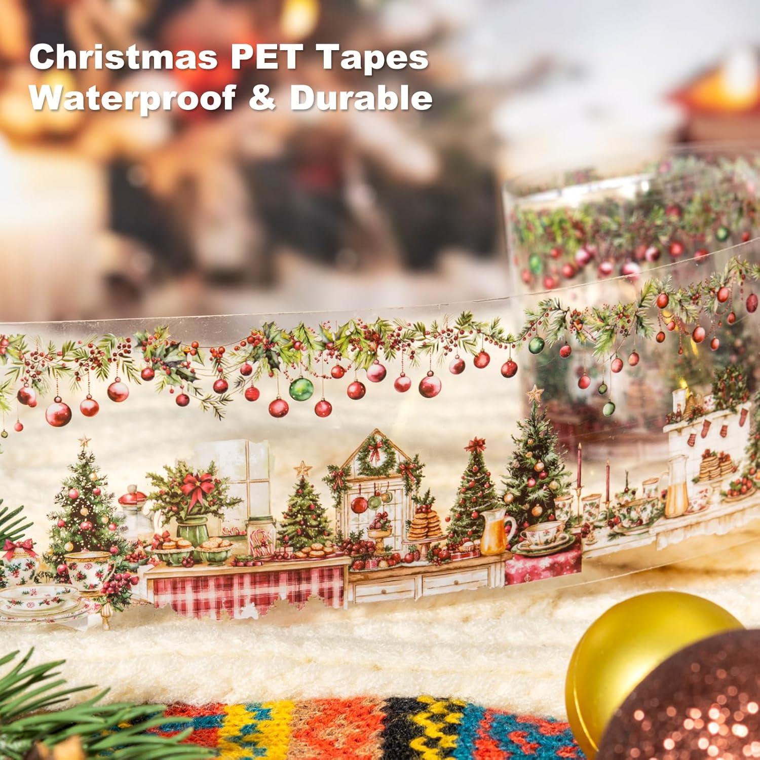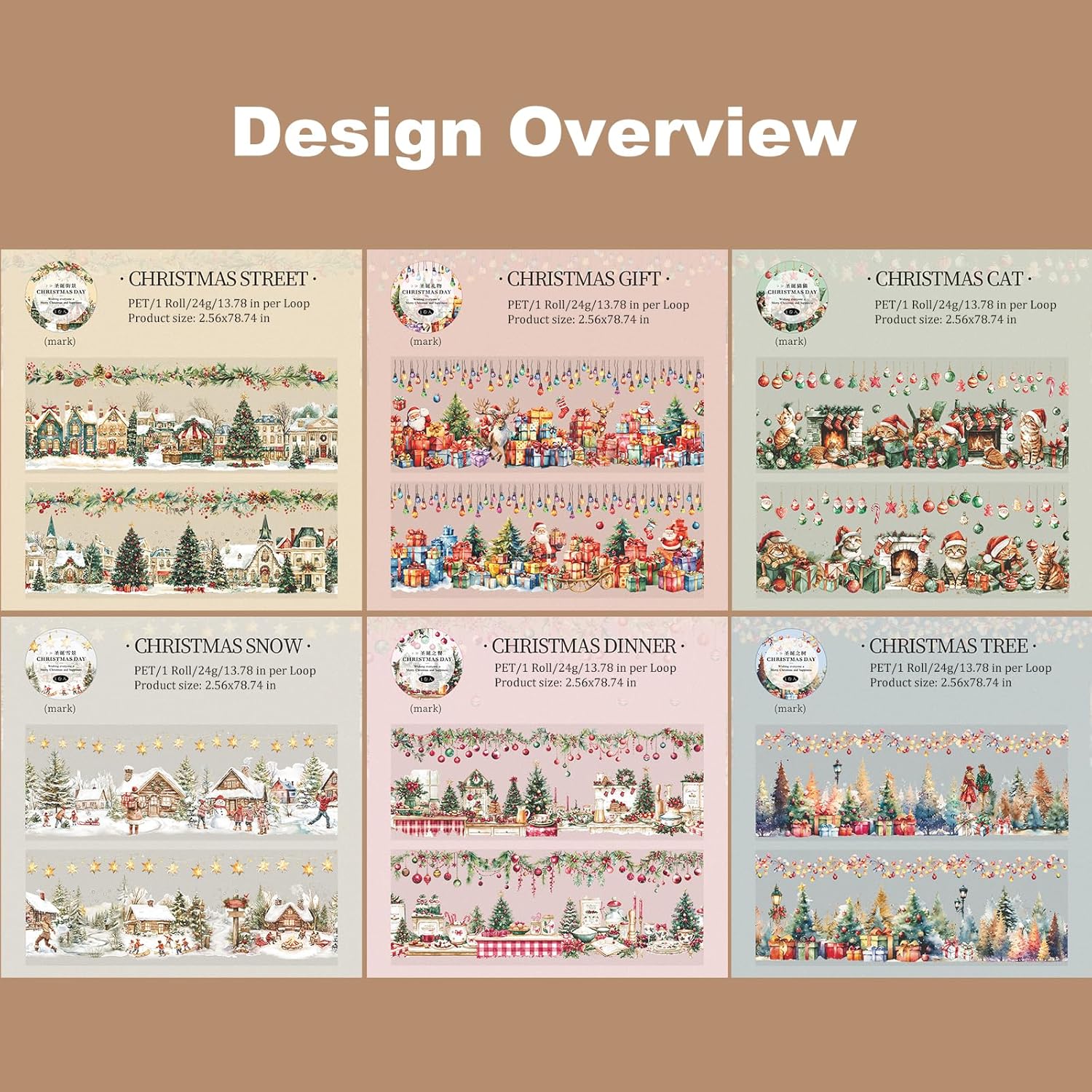 - Festive Design Variety: Includes 6 PET tape rolls featuring seamless Christmas scenes with snowy cottages festive cats glowing lights and cozy indoor moments enriching scrapbook and journal pages with warmth and seasonal charm