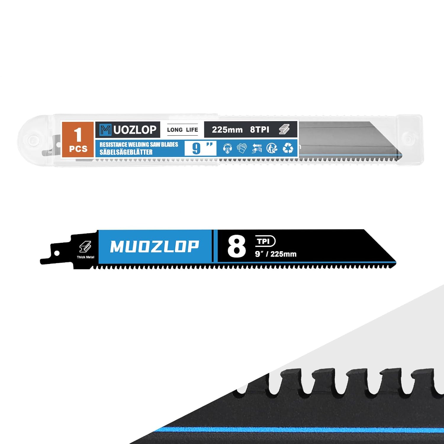 1 Pack 9 inch Reciprocating Saw Blades Set,8 TPI High Carbon Saw Blades for Metal ,Saw Blades with Organizer Case (1, 8T/9inch)