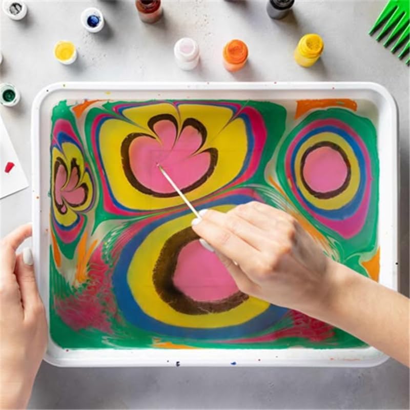 - 【DIY Fun Activities for All Ages】Our marbling paint kit features safe, non-toxic, pigments and carrageenan. It's a art craft project where you can effortlessly follow the instructions, drop paint onto the drawing liquid, swirl to create intricate patterns, and transfer them onto paper/stone/wood/fabric/scarf/ vase or any other smooth surface!