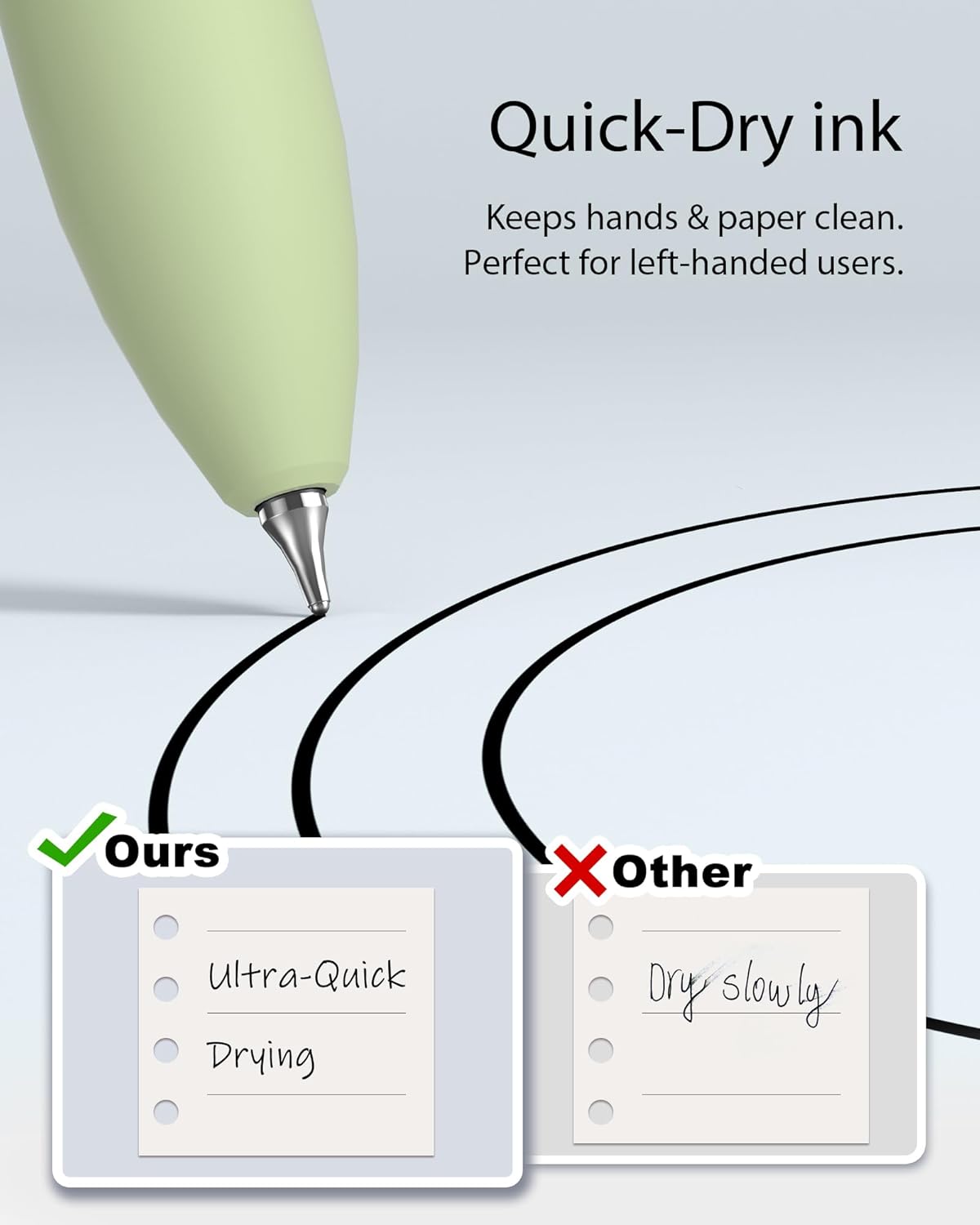 - Quick-Dry Long Lasting Ink:0.7mm black ink can slide effortlessly, dry immediately, & is not easily dirty. It has a high-capacity reservoir (up to 2,296 Feet ), which is very suitable for left-handed & right-handed users.
