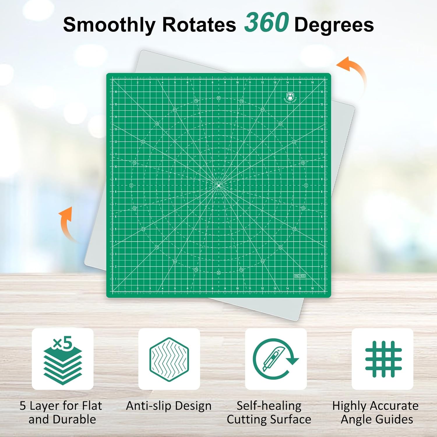Headley Tools 17"x17" Rotating Cutting Mat, Self Healing Mat with 360-Degree Rotation & Anti-Slip Base, Sewing Board Cutting Mat Perfect for Fabric Quilting Leather Hobby Project, Green